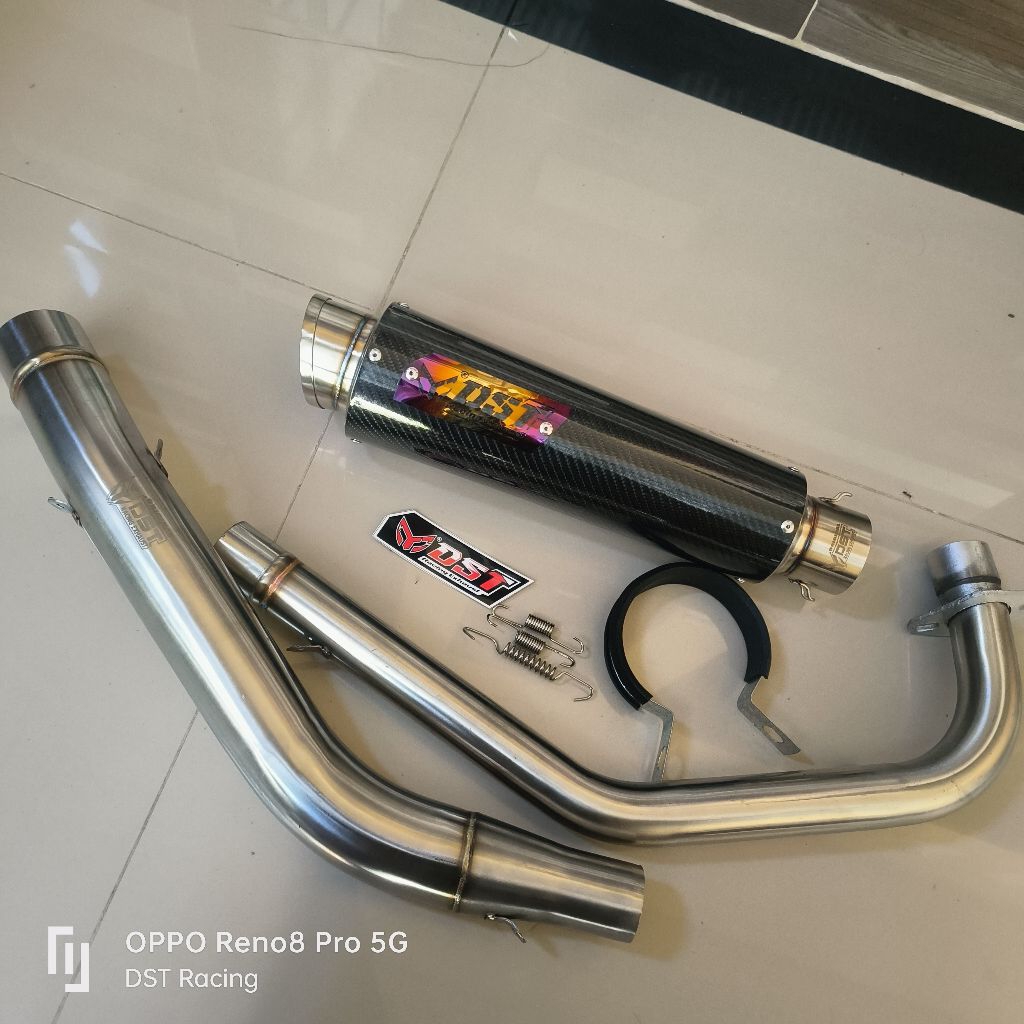 Knalpot dst M1 long carbon full set cbr r15v3 GSX Vixion dll inlet 50 mm header full bending