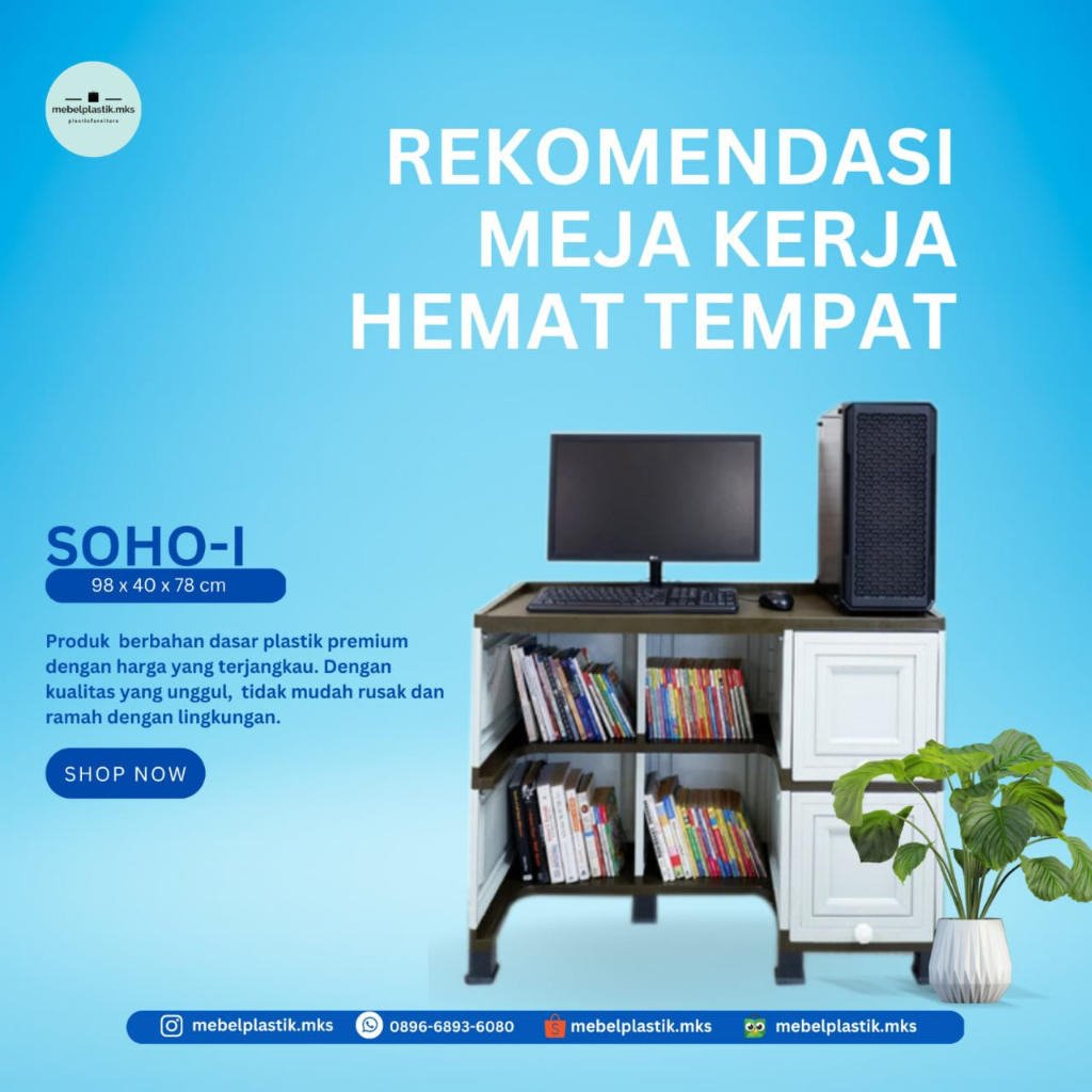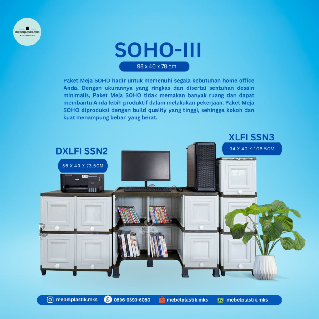 Meja Kerja SOHO Club Meja Tulis Lemari Plastik Set Warna Putih/Cream Flip Large Meja Kantor