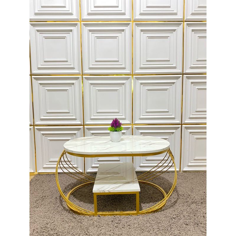 Meja Tamu Minimalis Gold Estetik Mewah Besi Marmer