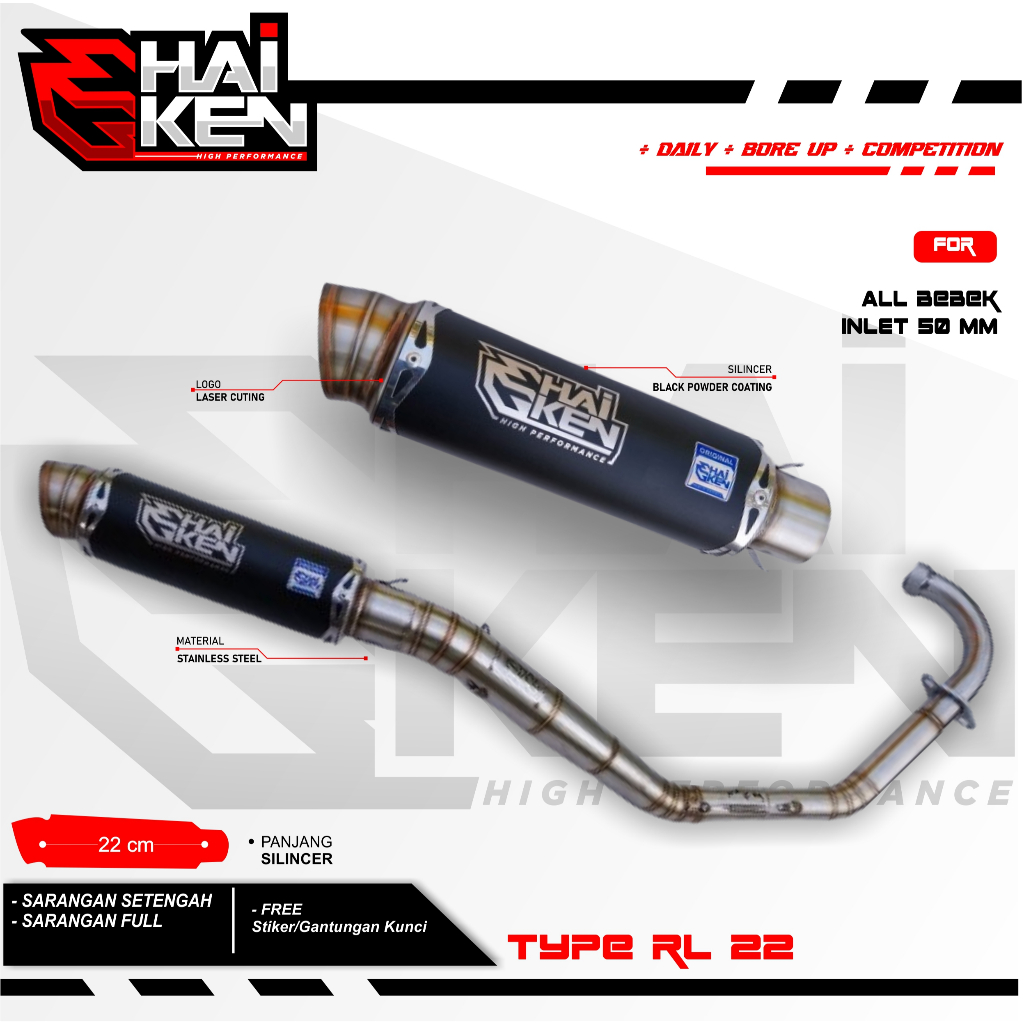 Haiken knalpot rodrace satria fu karbu/inject, mx king, mx new old fullset bahan stainlis coating