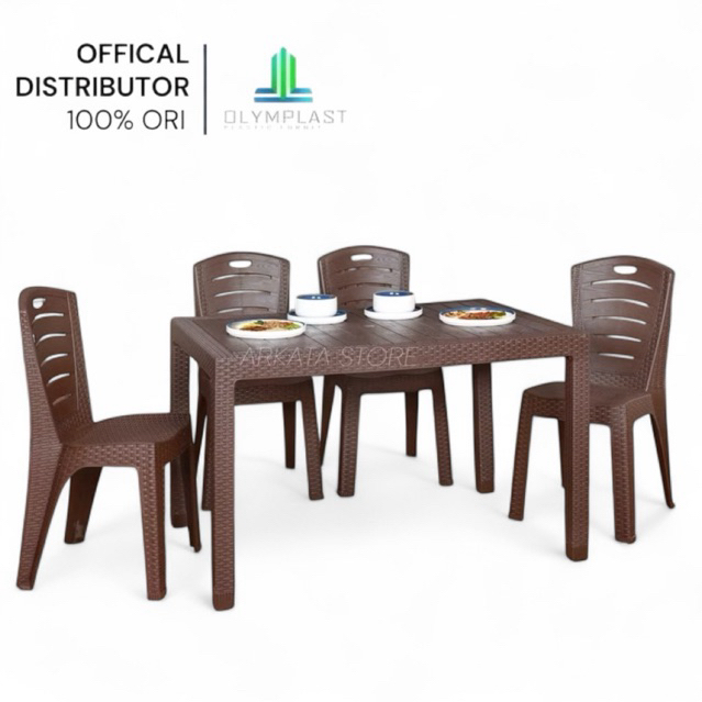 1 Set meja Makan Plastik 120 ODT-R + 4 Kursi Olymplast Rotan OL 203 208