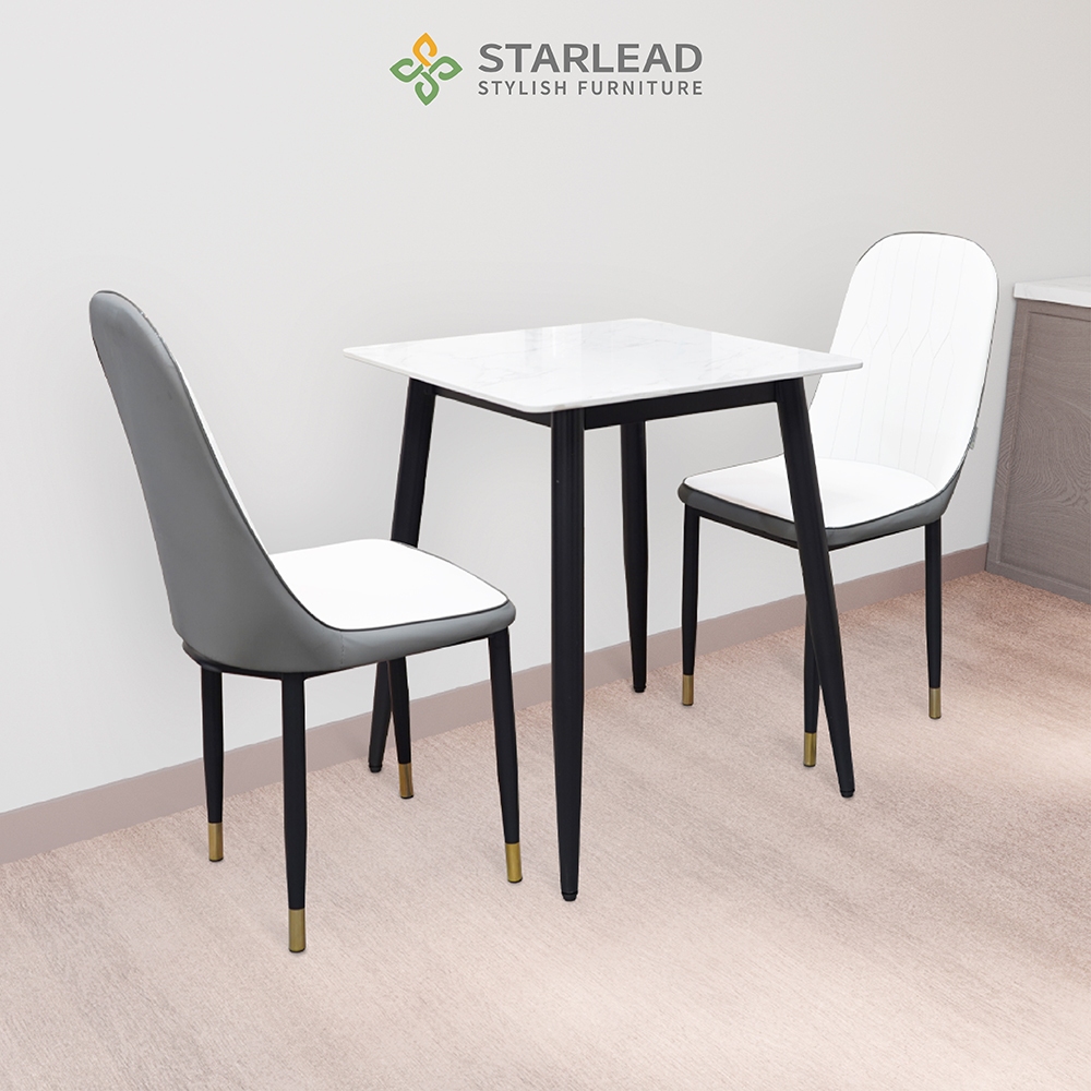 STARLEAD Meja Makan / Meja Cafe Compact Size 60cm Sintered Stone - Snow White / Ermine Grey