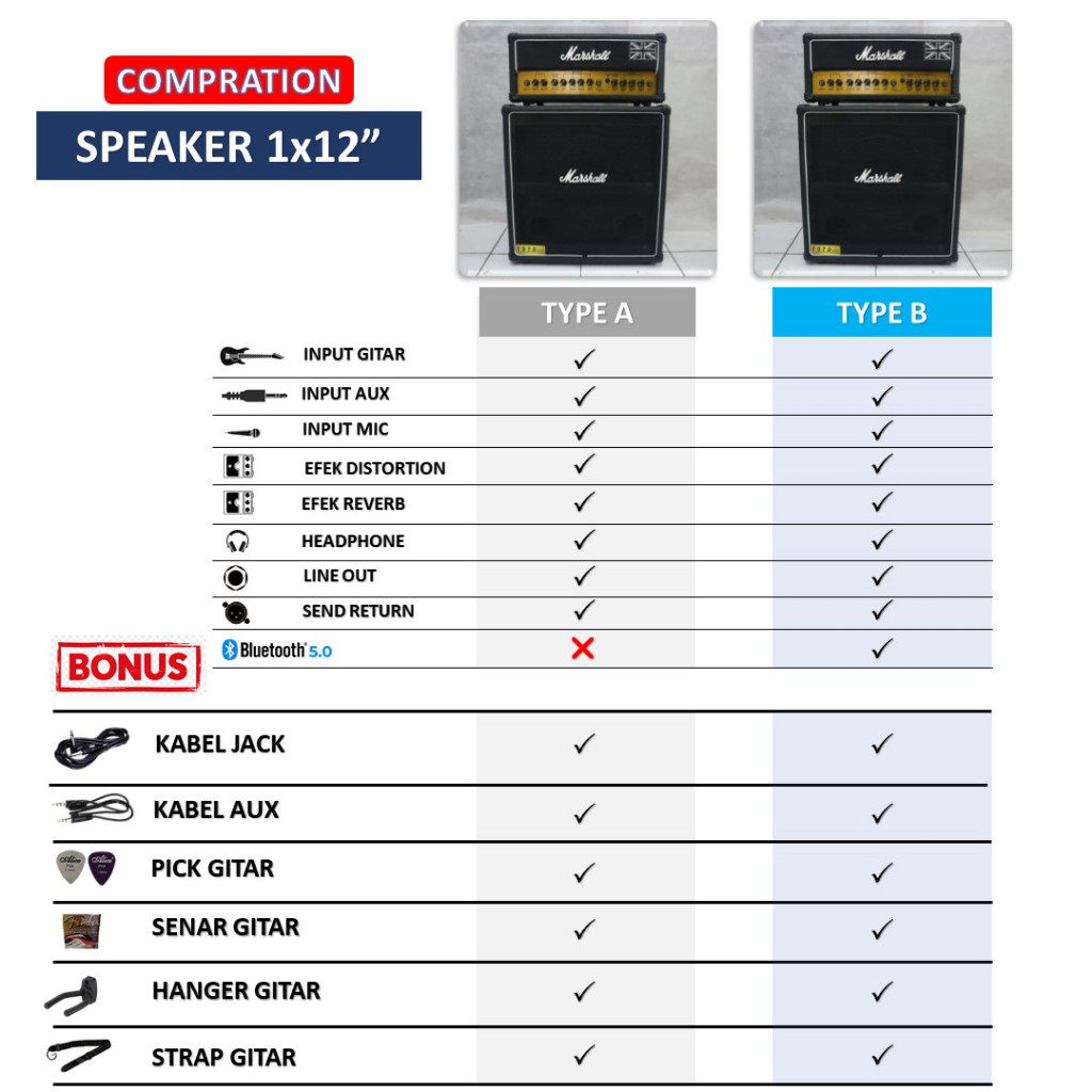 Ampli Gitar & Bass 12 Inch Bluetooth bisa untuk karaoke Head Cabinet 3 Input Bonus Kabel Jack