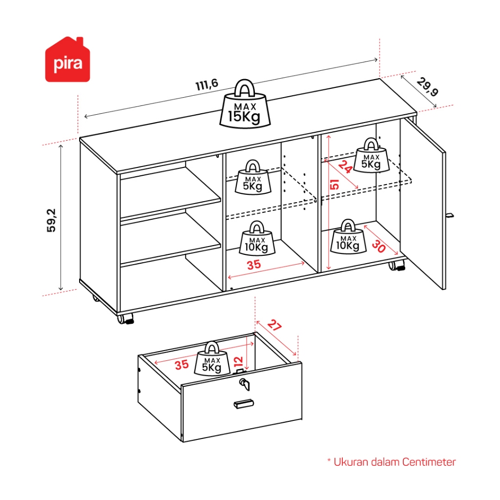 PIRA METROPOLIS OX - ARUNA PD120 Lemari Arsip / Kabinet / Meja Samping / Meja Nakas / Meja Sudut
