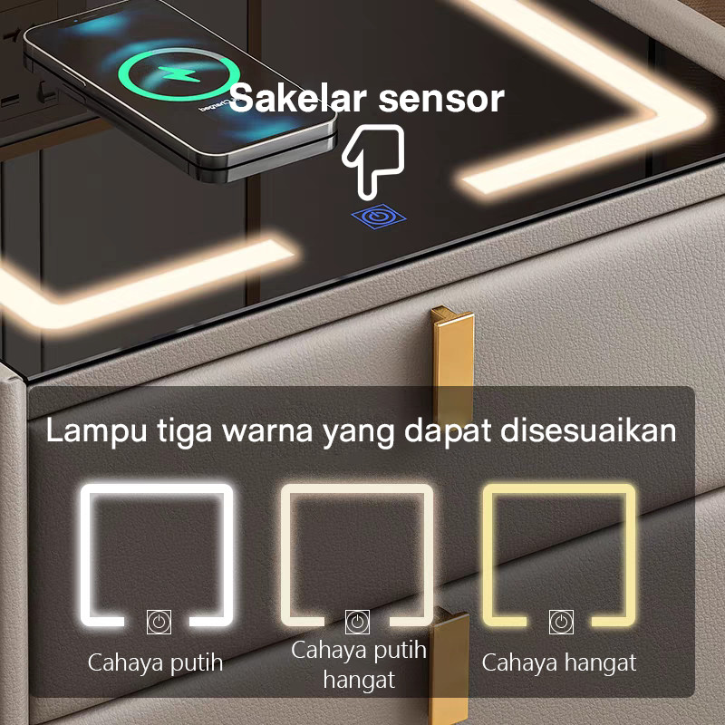 Meja Nakas 25/40cm Wireless Charging Smart Fingerprint Bluetooth Speaker Meja Sudut Nakas Meja Samping Bedside Table mq