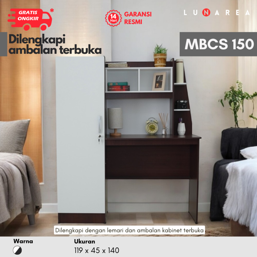 Lunarea Furniture MBCS 150 Meja Tulis Meja Belajar Minimalis Dengan Lemari dan L Penyimpanan