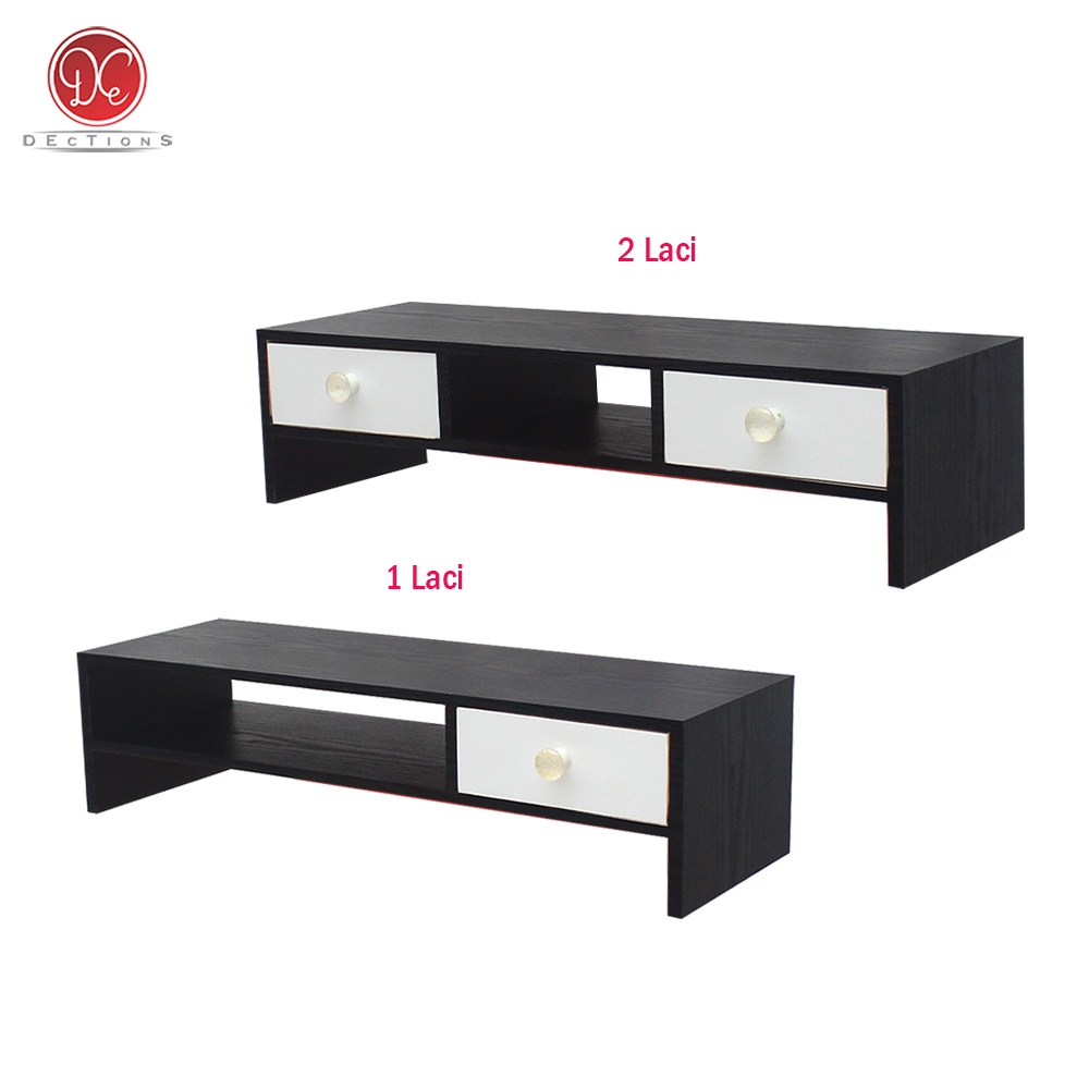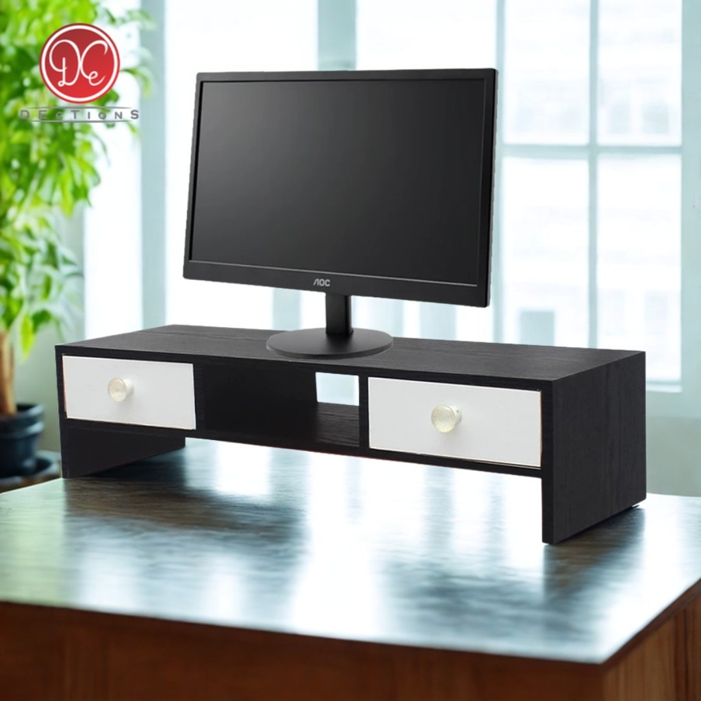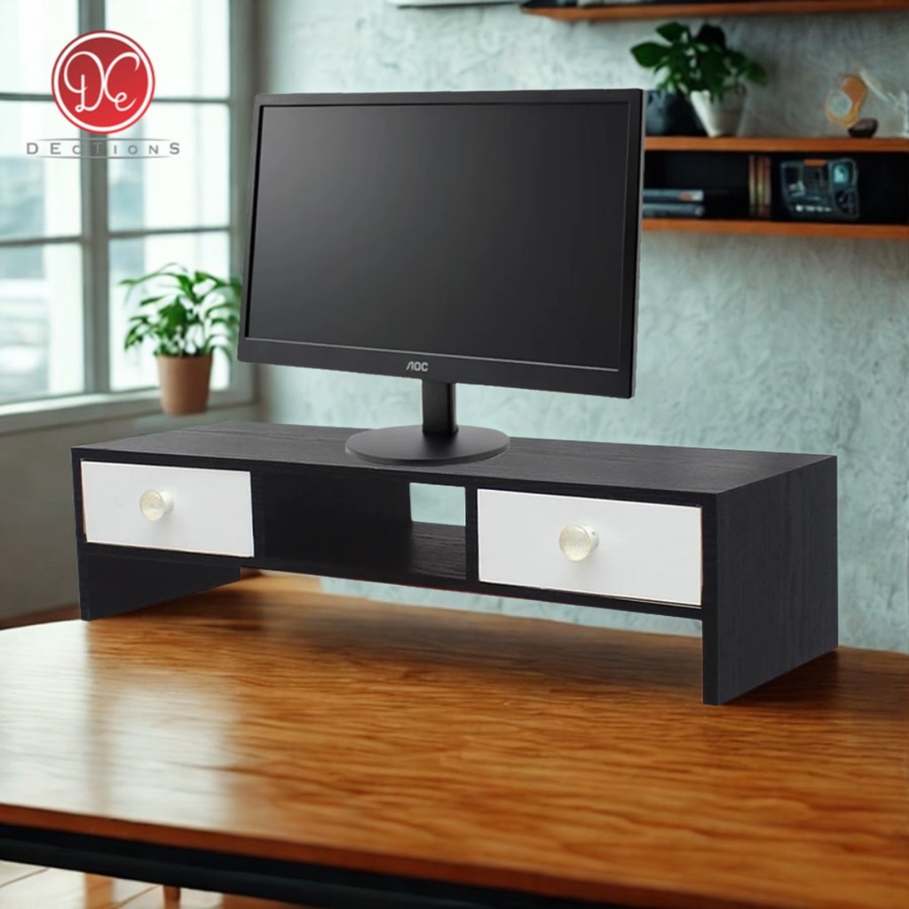 Dections Meja Stand Monitor PC Dudukan Komputer 2 L Modern Minimalis Hitam Putih