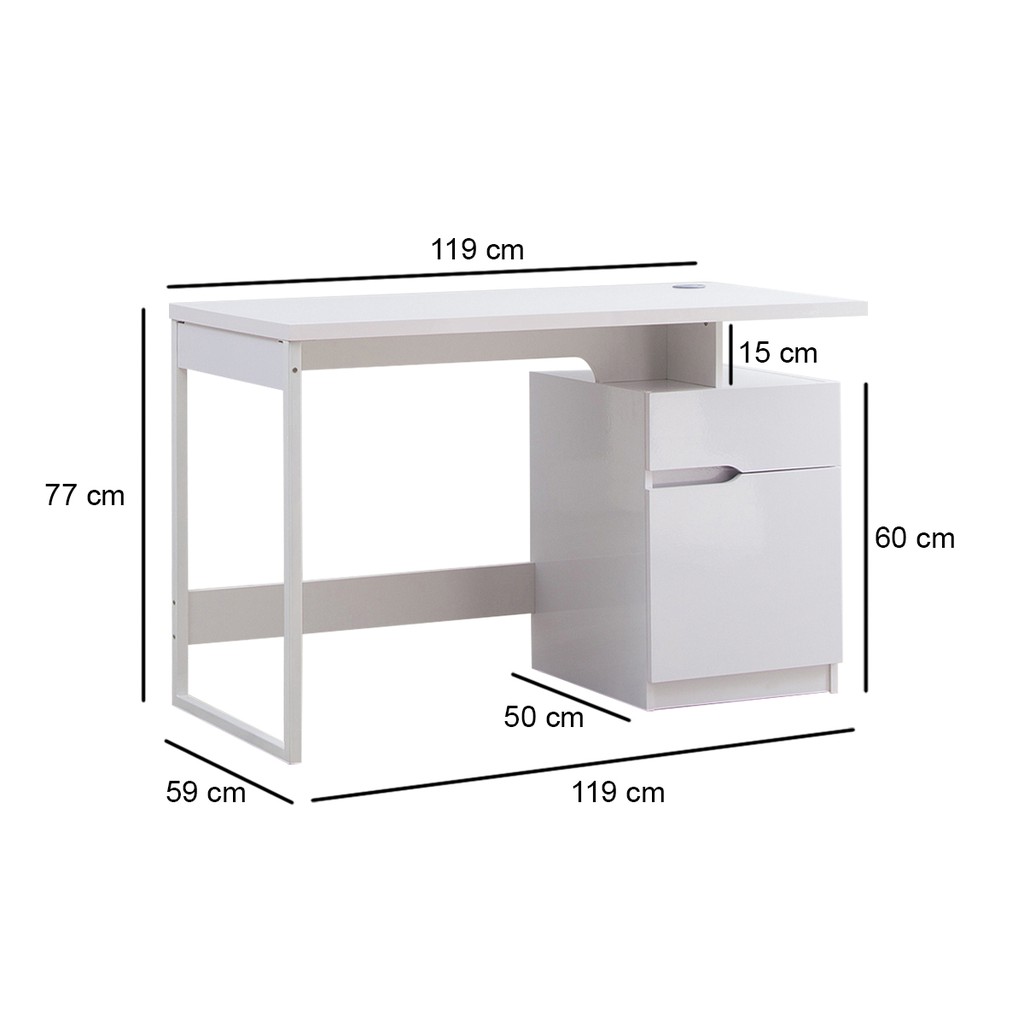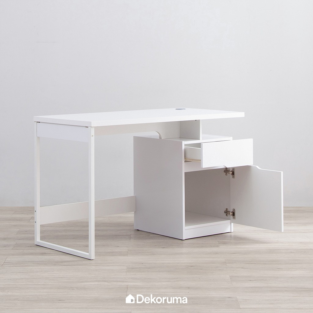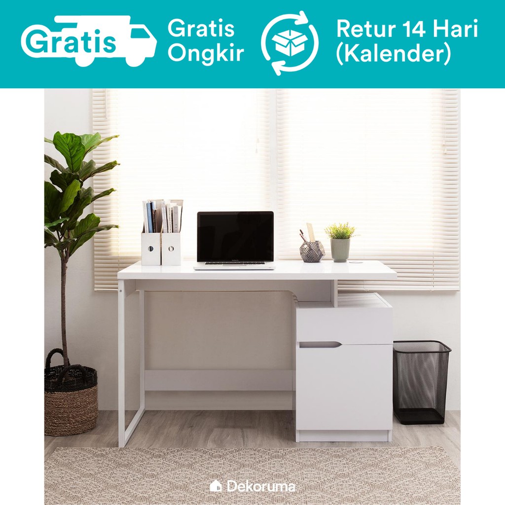 Dekoruma Lexa Desk Meja Belajar Minimalis Meja Kerja Putih dengan Lemari dan L Besi