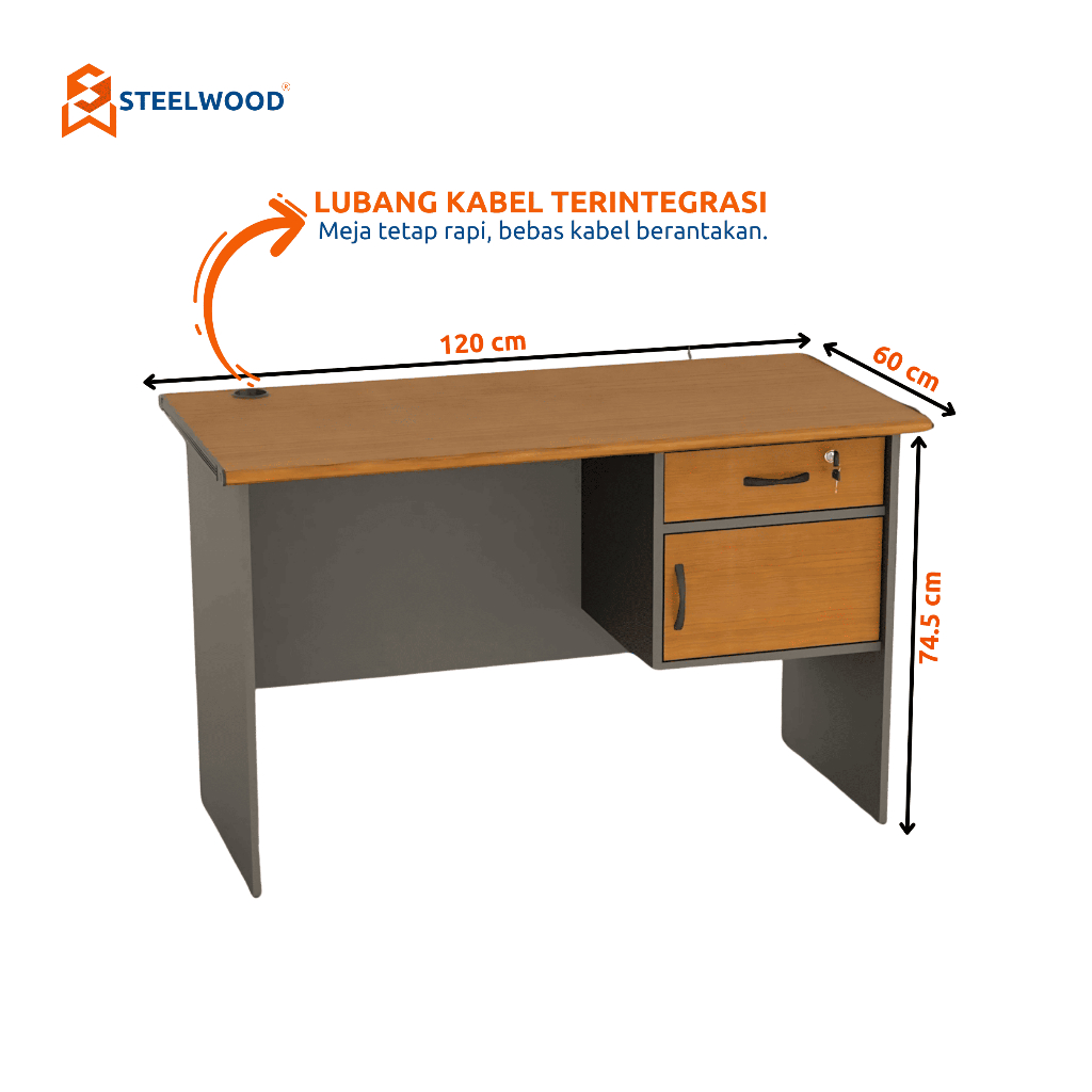 STEELWOOD || MEJA KANTOR 1/2 BIRO 1 LACI 1 LOCKER/MEJA KERJA/MEJA KAYU/LACI LOCKER KAYU SERBAGUNA