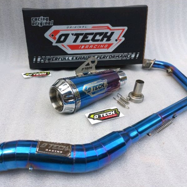 Knalpot racing original otech racing short blue fullsystem for satria fu, sonic, cbr facelift, vixion, gsx150, mx king dll