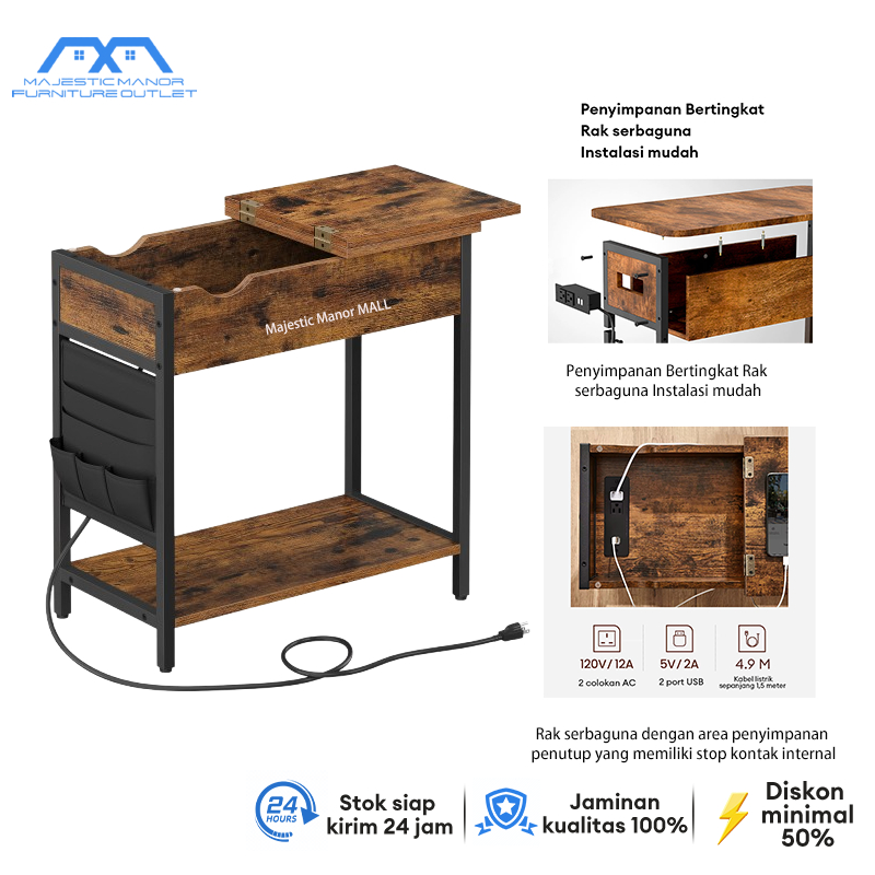 MAJESTIC Meja Nakas Pintar Dengan Meja Geser Dan Port Usb Tersembunyi Meja Ruang Tamu Minimalis
