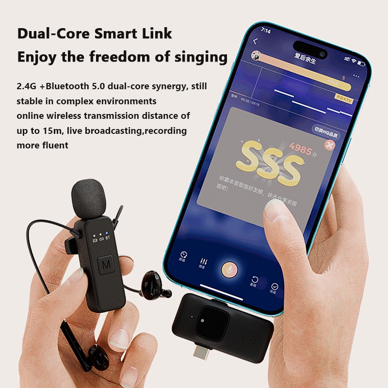 NETPAC Wireless Soundcard Headset BT 2 in 1 Mikrofon klip Nirkabel Sound Card Earphones Live Broadcasting Audio Editing