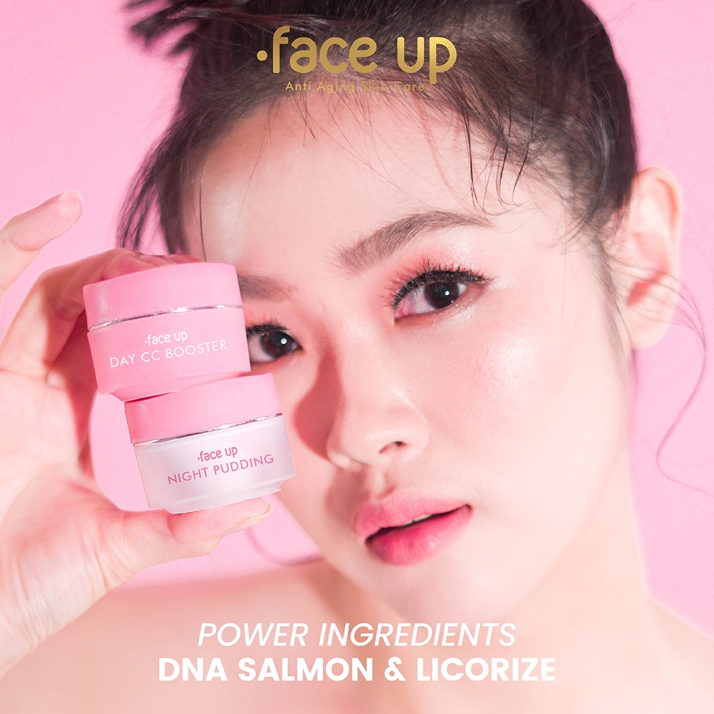 FACE UP DAY CC WHITENING BOOSTER & NIGHT PUDDING DNA SALMON ( CREAM SIANG & MALAM )