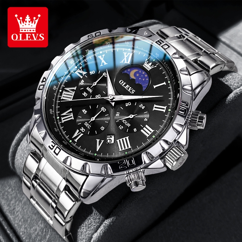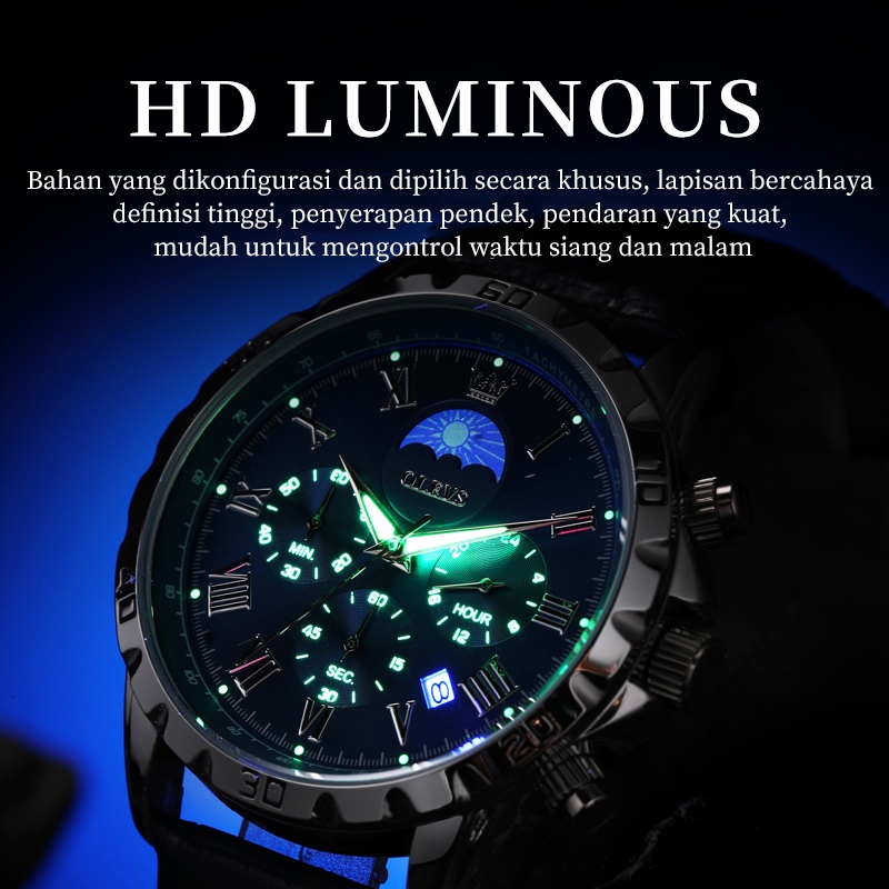 OLEVS Jam Tangan Pria Anti Air Original 2025 Terbaru Chronograph Led Analog Cowok Tahan Stainless Steel Watch Men Model 2950