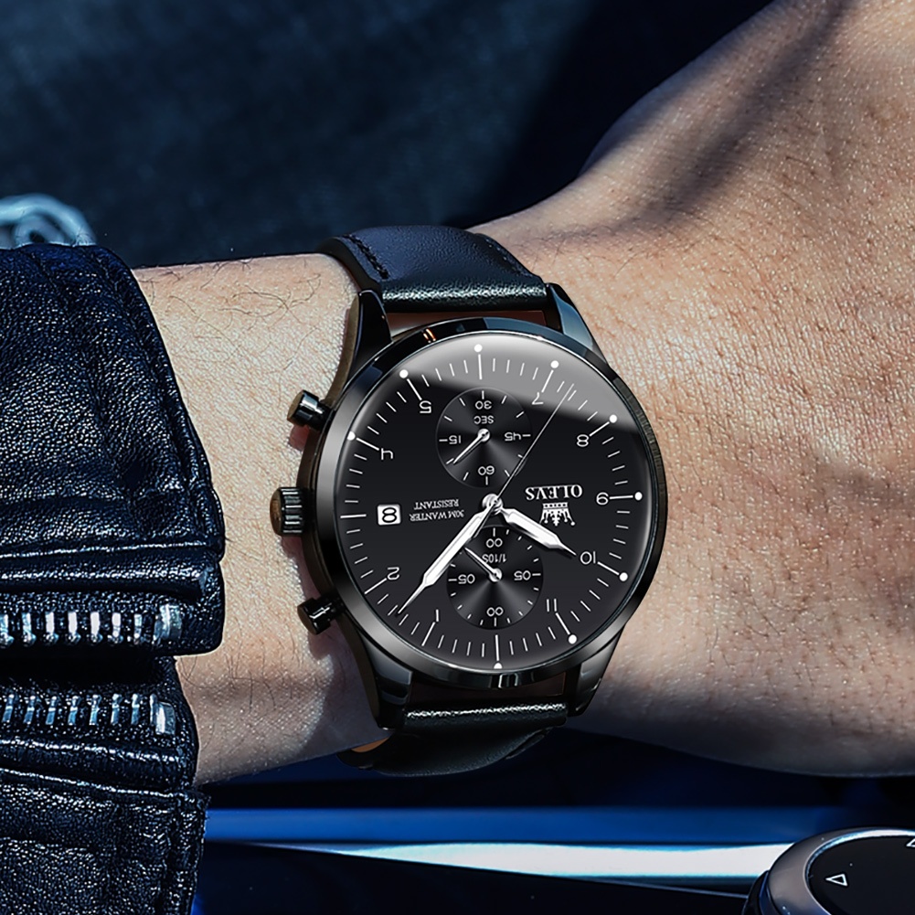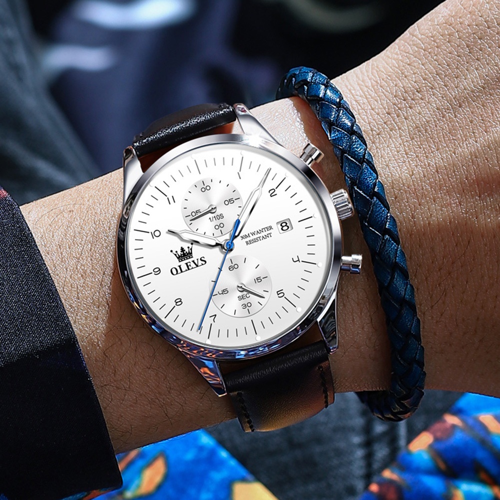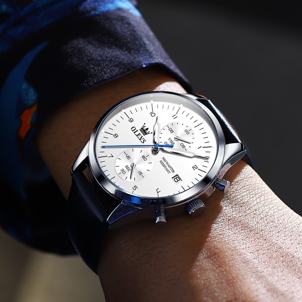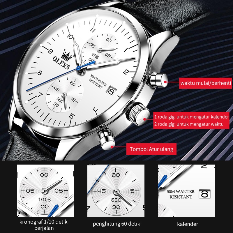 OLEVS Jam Tangan Pria Anti Air Original Kulit Keren Luxury Chronograph Watch Men Multifungsi