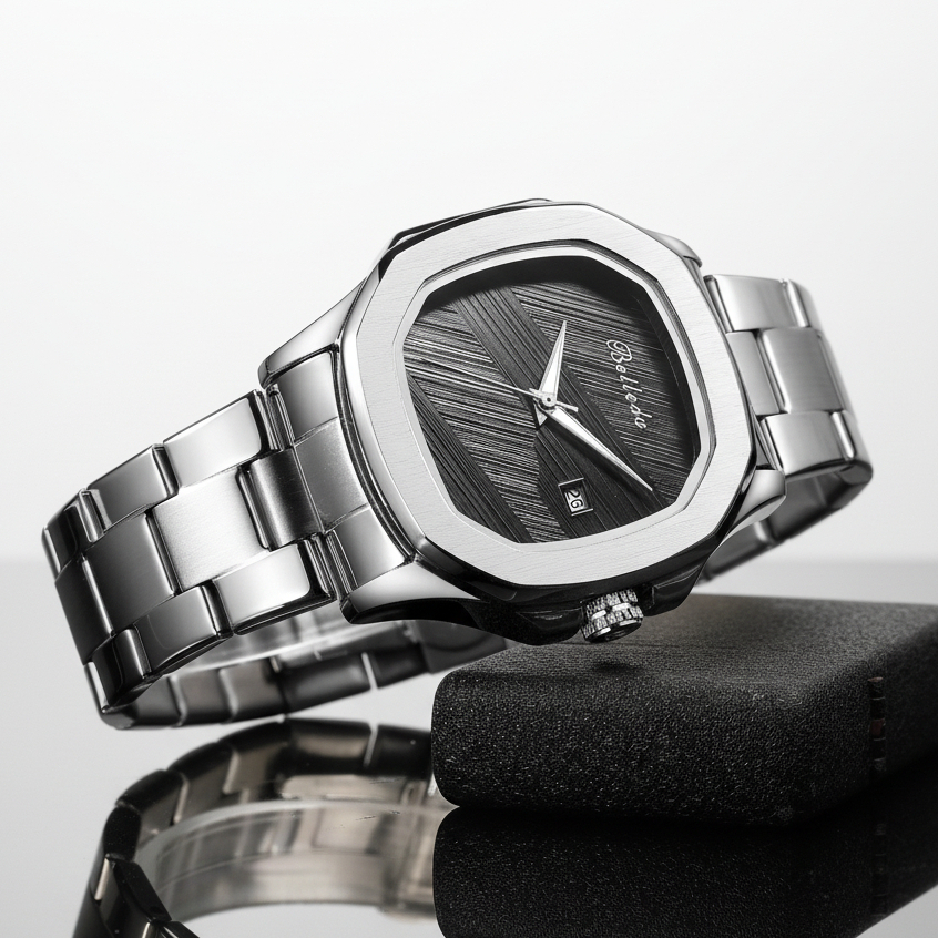 Jam Tangan Pria Belleda 9672 Stainless Steel Anti Air Original Luxury Calendar Termurah Terlaris