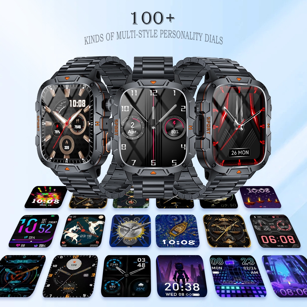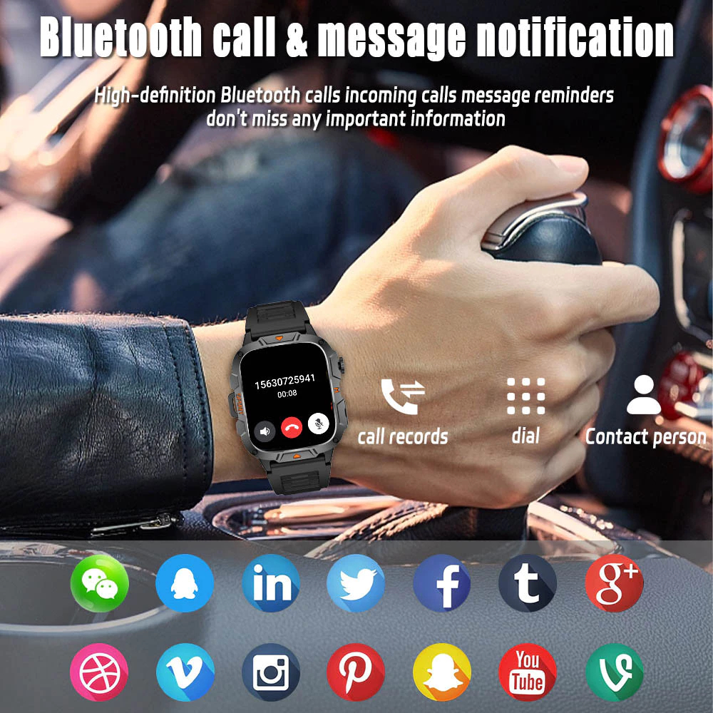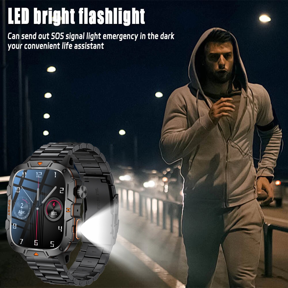 LIGE Jam Tangan Pintar Baru Pria Asli Layar HD 1,96" dengan Senter UV LED 100+ Olahraga Tahan Air Baterai 420MAh Jam Tangan Pria