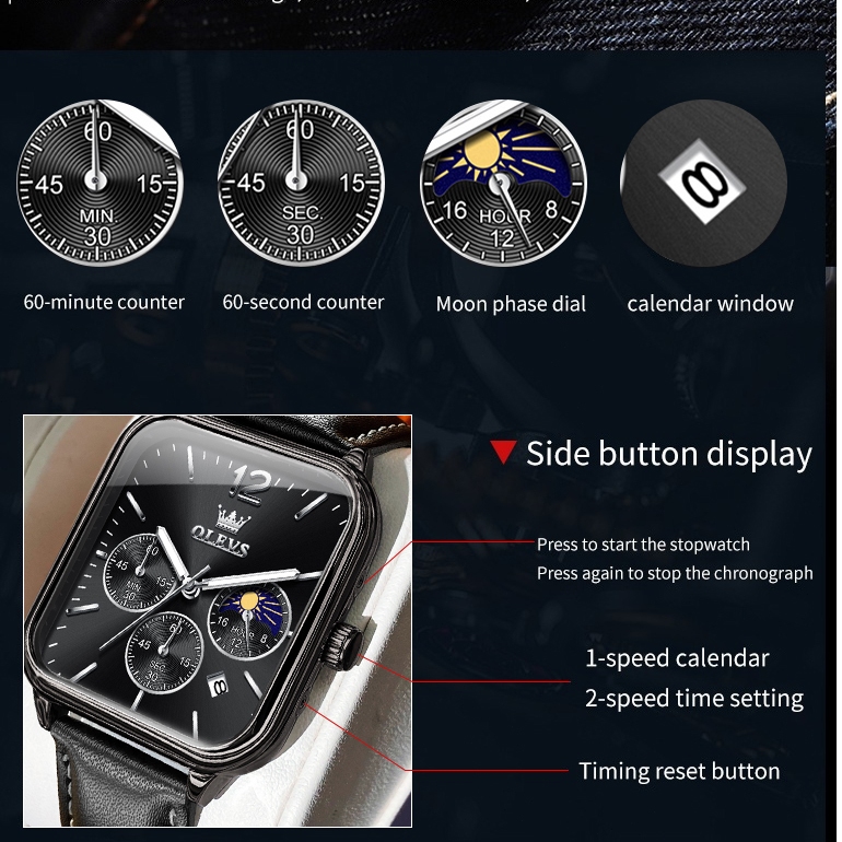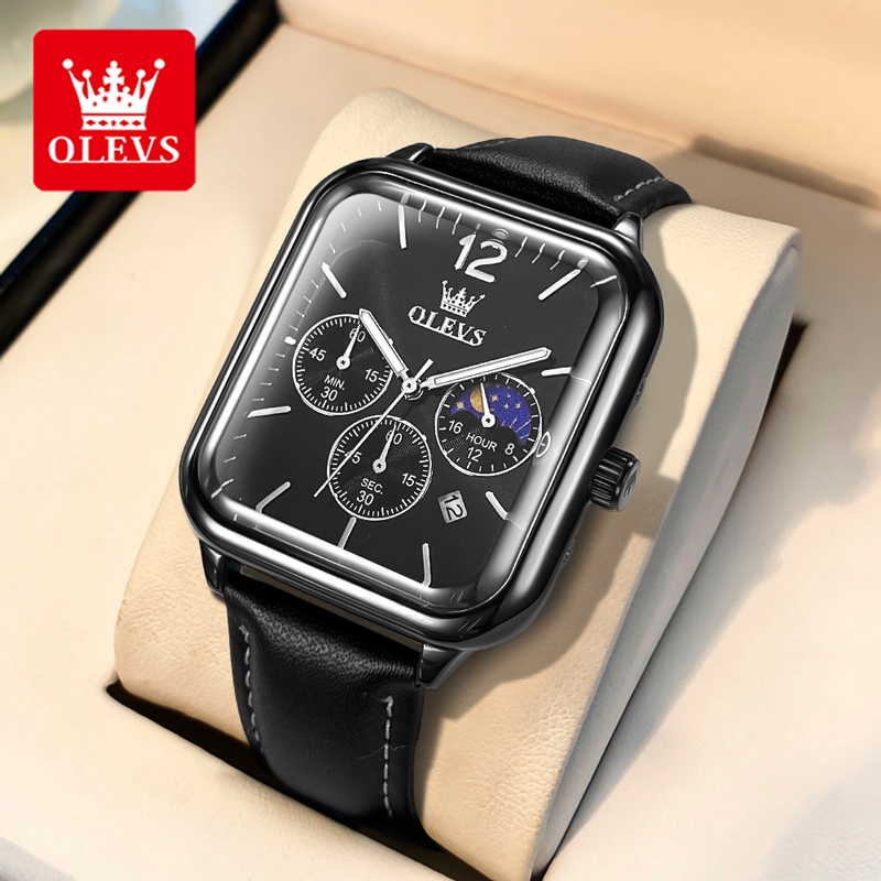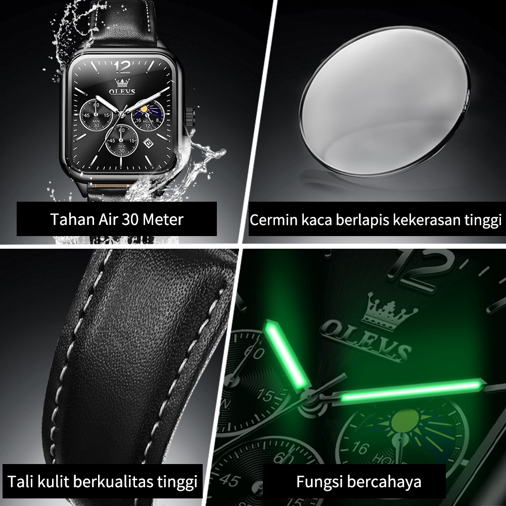 OLEVS Jam Tangan Pria Anti Air Original Mewah Keren Fashion Persegi LED Kulit Watch Men