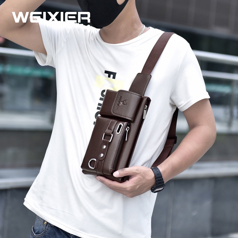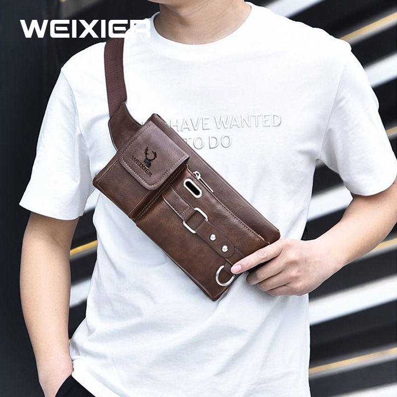 WEIXIER 8117 Tas Selempang Pria Kulit Waistbag Anti Air WK-SBY