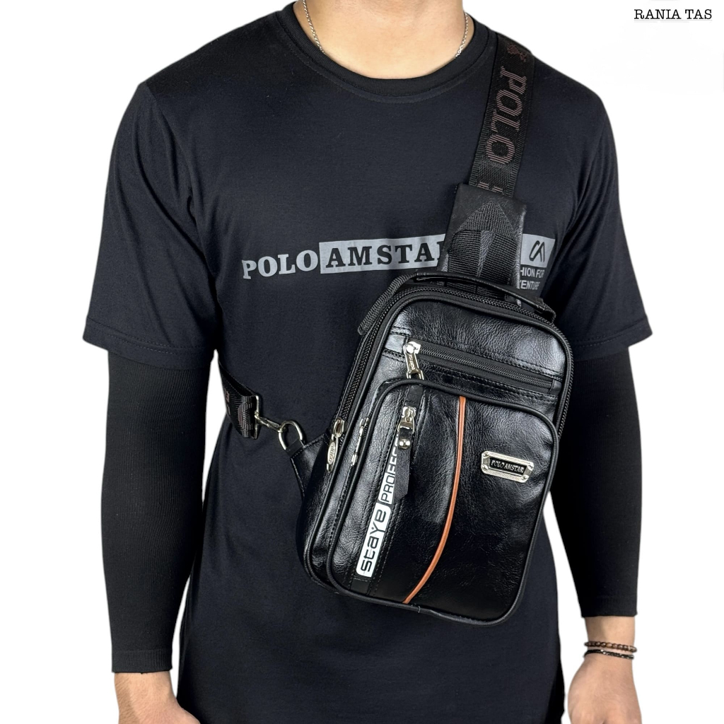 Slingbag Kulit PU Leather Original Polo Amstar Waterproof Tas Selempang Pria