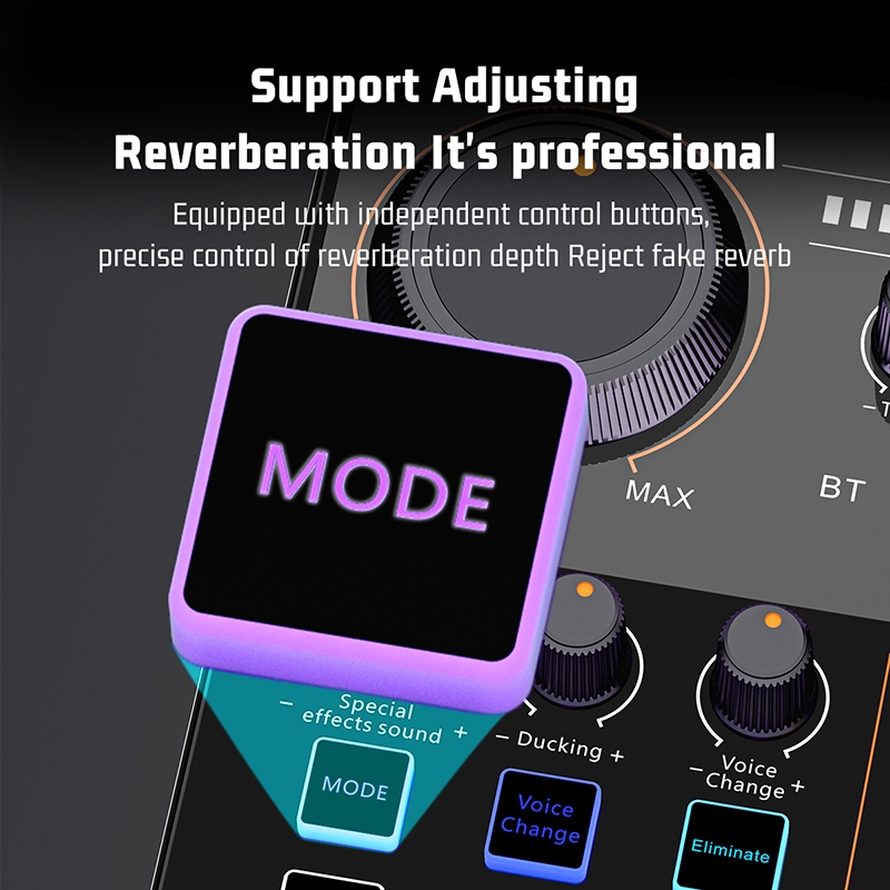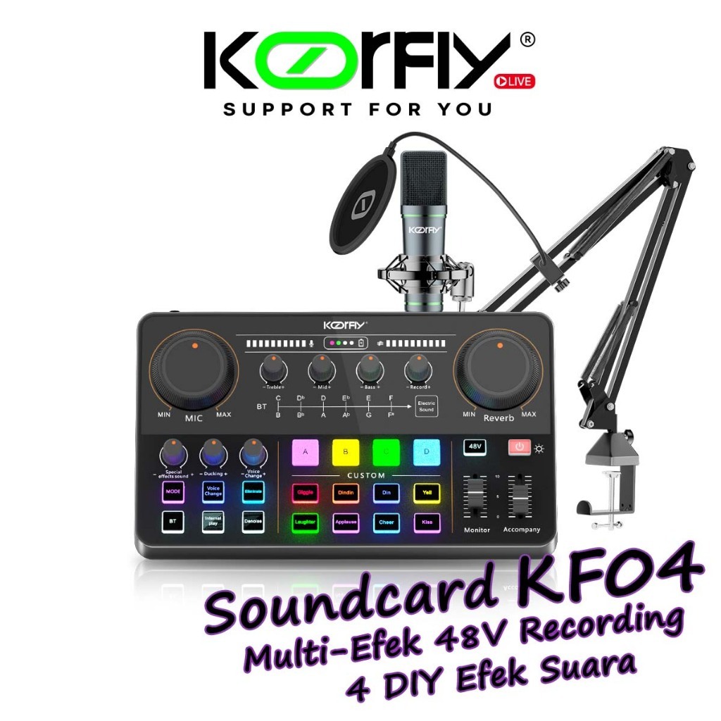 Koorfly Kf04 Multi-Efek 48V Live Soundcard Live Mixer - 4 DIY Efek Suara/12 Efek RGB/ Untuk Konten Kreator Audio Live st