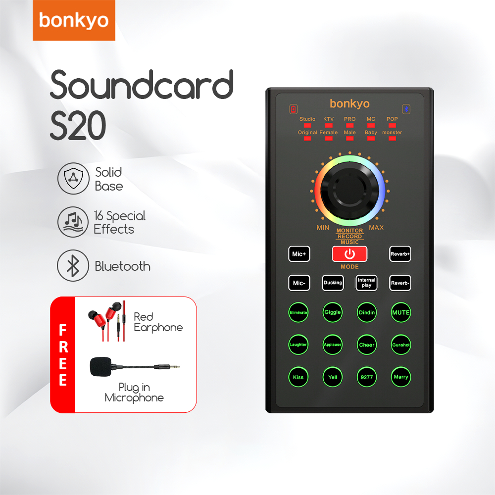 Bonkyo S20 sound card mendukung rekaman nyanyian langsung luar ran selebriti online TIKTOK soundcard mini eksternal