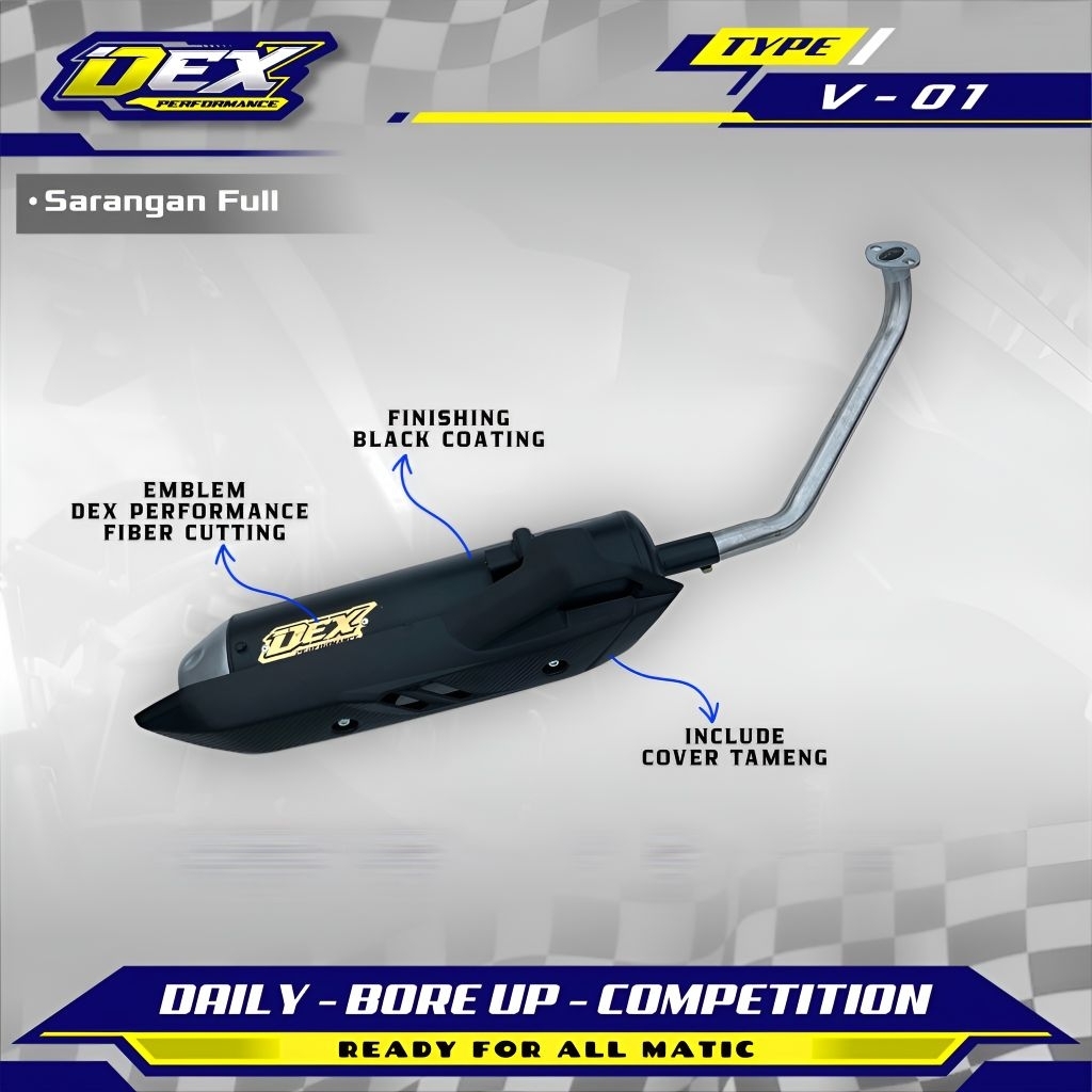 Knalpot Standar Racing DEX PERFORMANCE Type V - 01 Original Product Suara Bass Adem