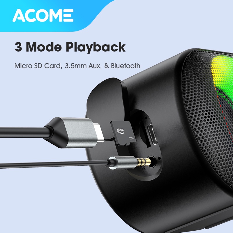 ACOME Speaker Bluetooth Super Bass High Power 5.0 10W IPX6 Waterproof RGB Light Rhyme Rave Party A10