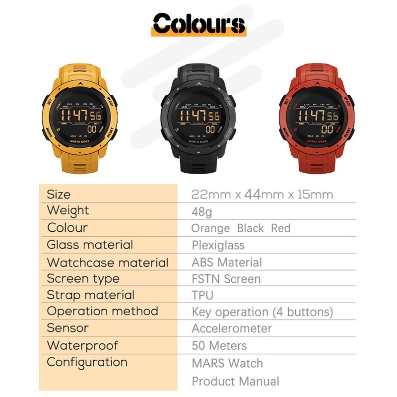 North Edge Mars Original Men Waterproof Digital Sport Watch Calorie Timer Alarm Clock ORIGINAL IMPORT