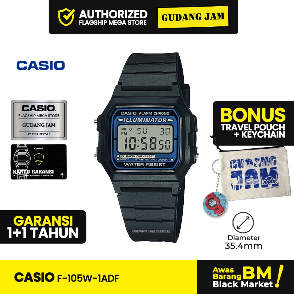 Casio Original Jam Tangan Pria F-105W-1ADF Black Resin Band