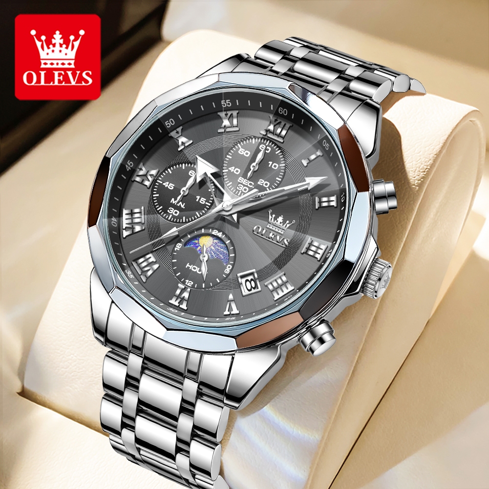 OLEVS Jam Tangan Pria Anti Air Original Bisnis Stainless Steel Watch Luminous Kalender Men Watchs 3675