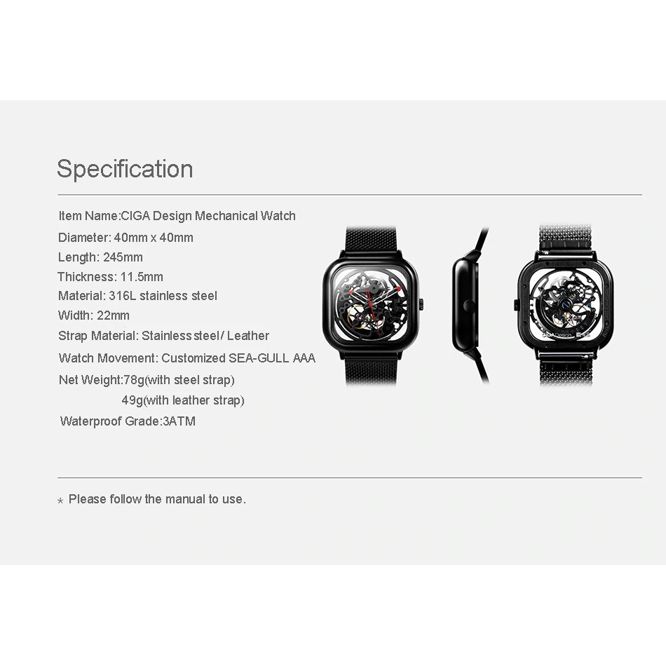 CIGA Hollowed Out Design Automatic Mechanical Watch