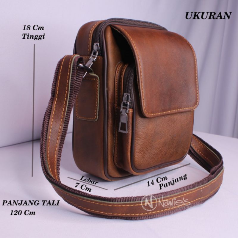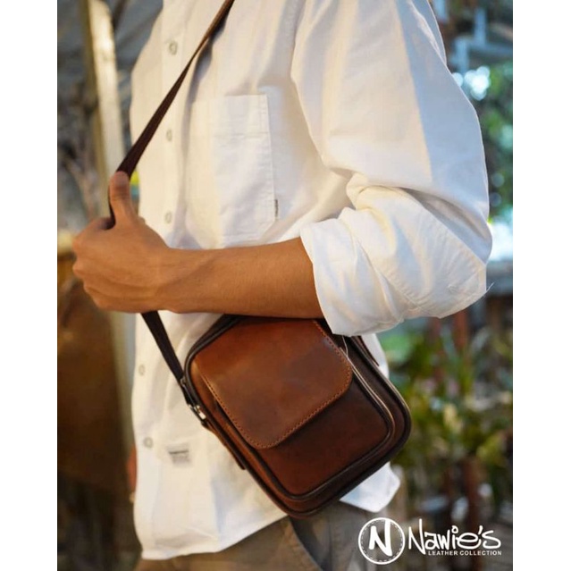 Tas Slempang Pria Kulit Sapi Asli Tahan Panas Anti Air BELLY BAG Nawies Leather