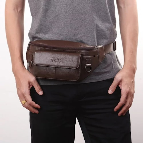 Tas Waistbag Pria Kulit sintetis Tas Selempang Pria Kulit Waterproof Tas Pinggang Pria Cowok Distro