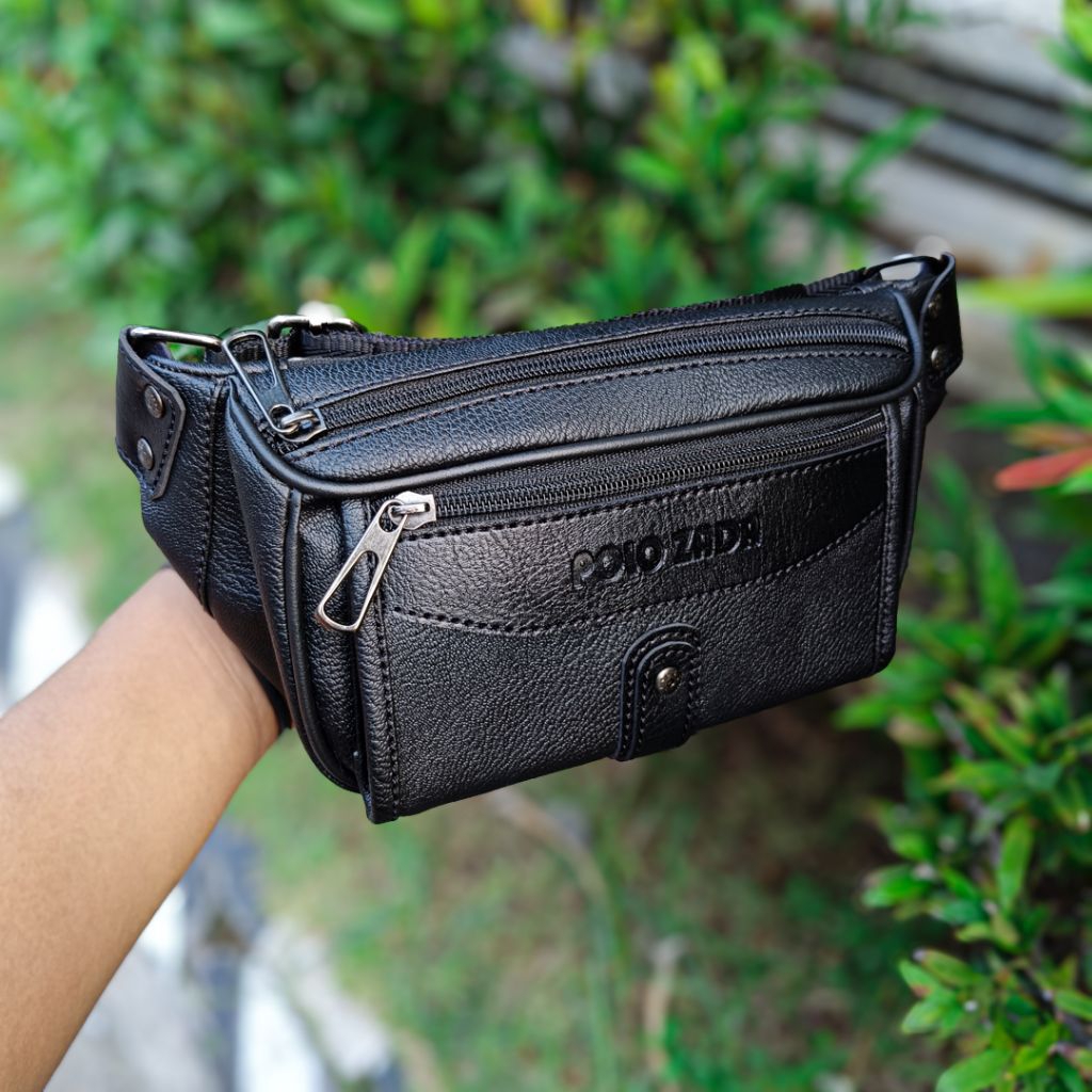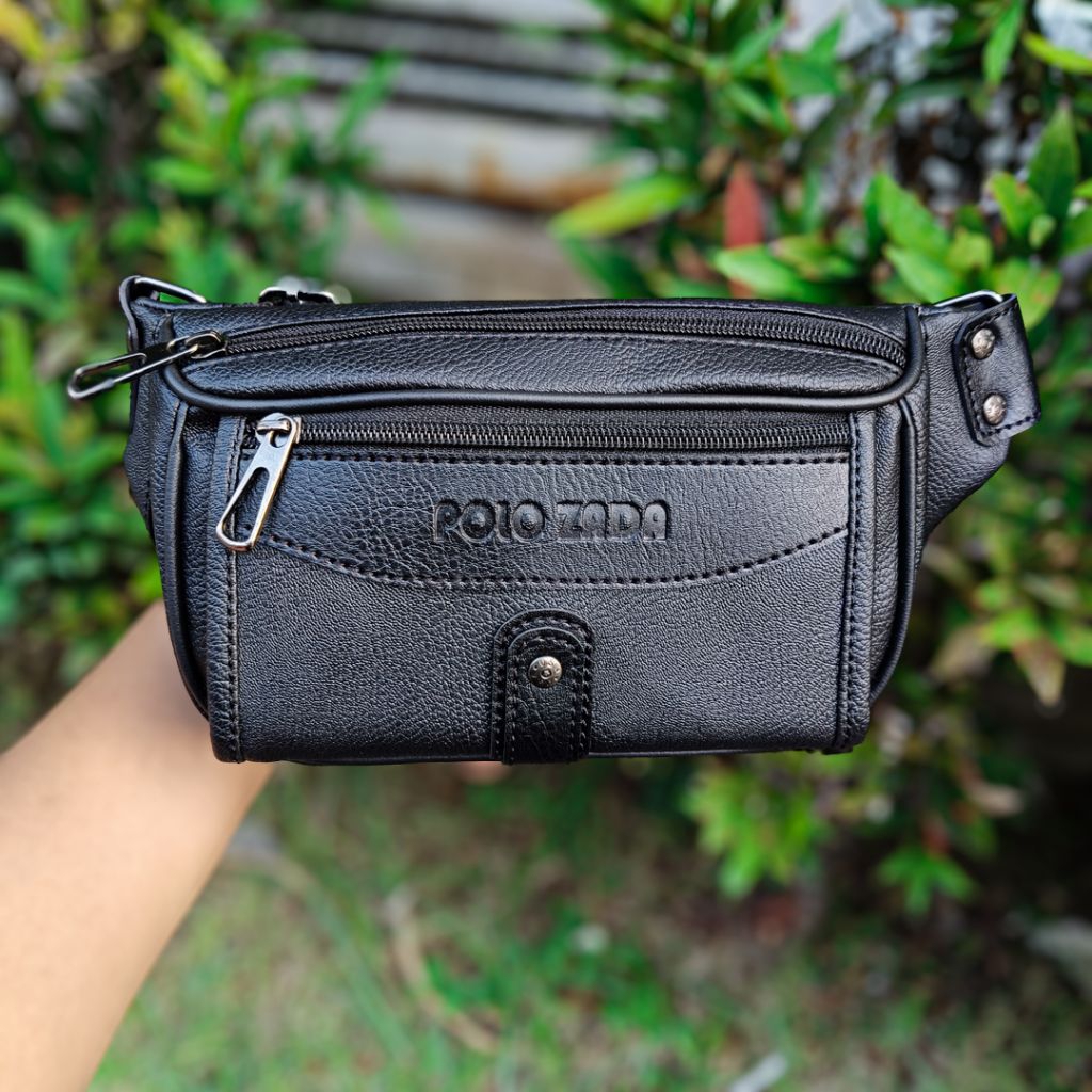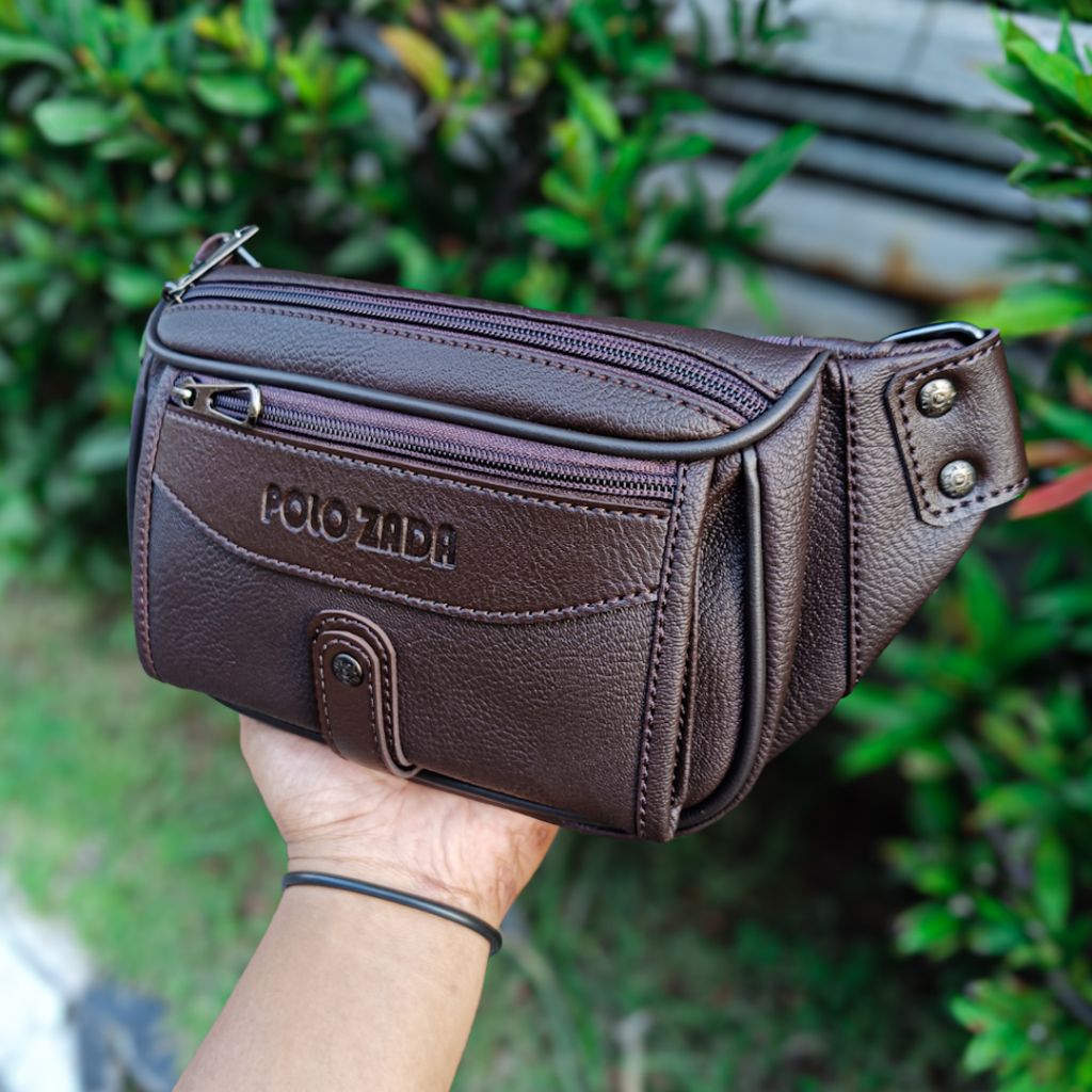 POLOZADA | Tas Selempang Pria Kulit Sintetis Premium | Waist Bag Pria Original Merk Polozada
