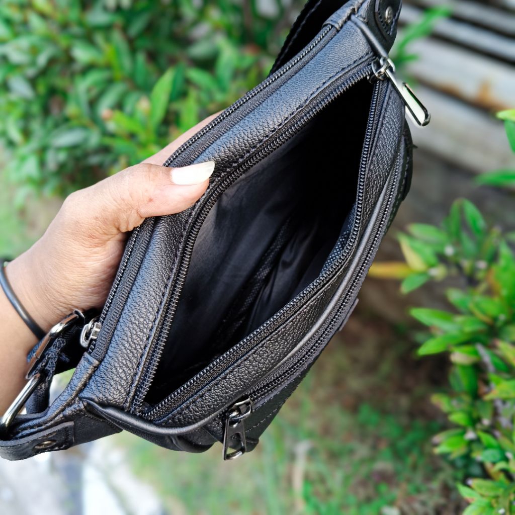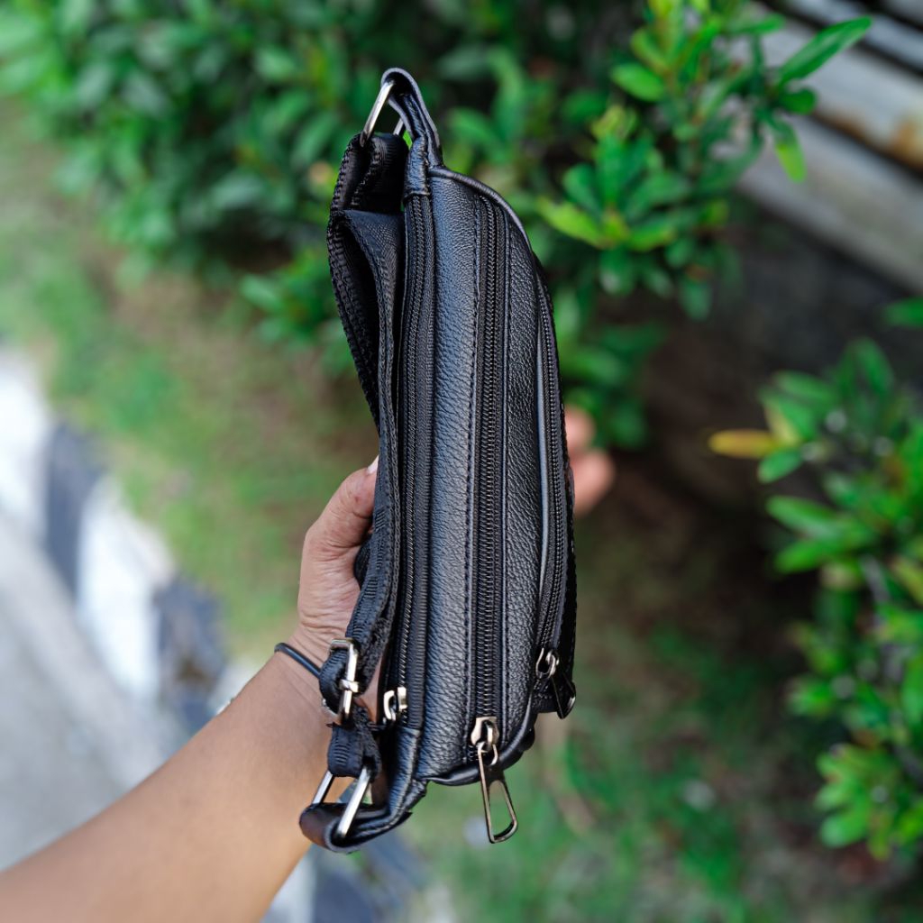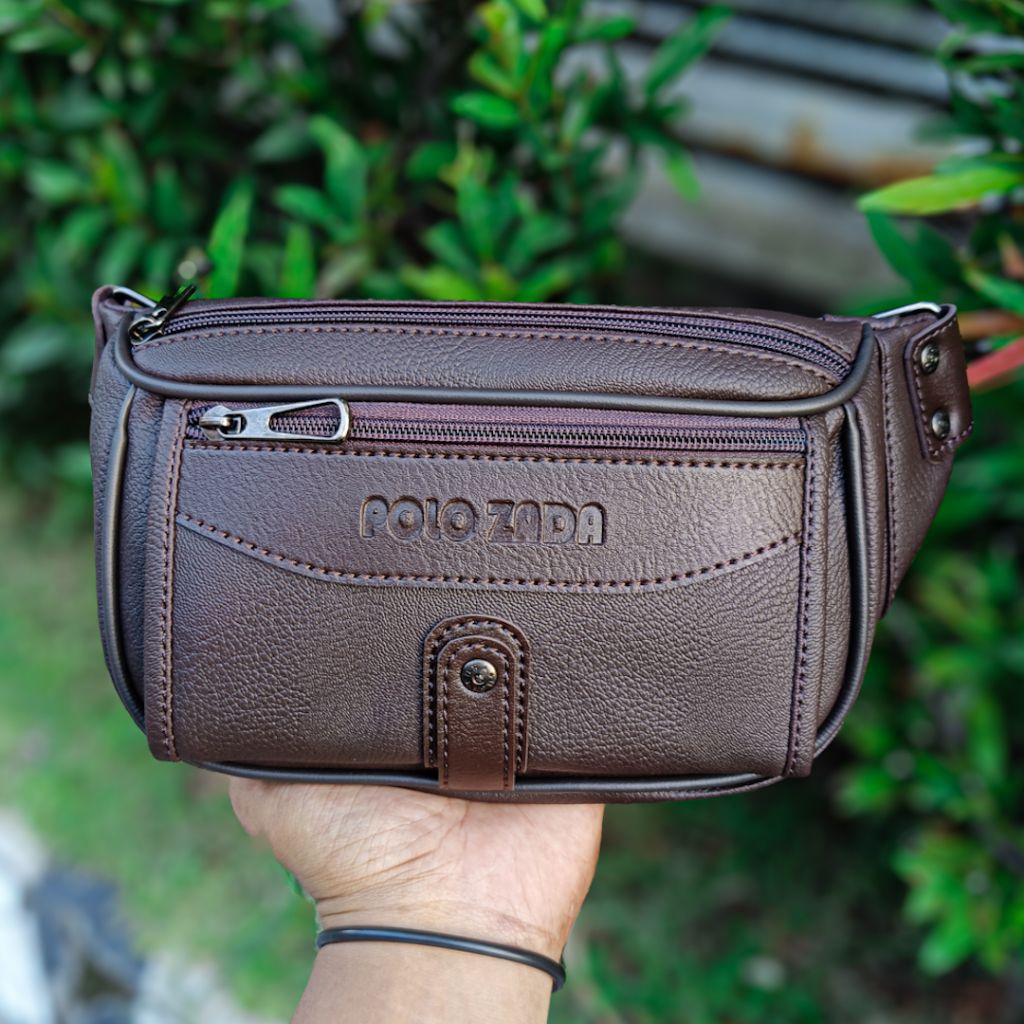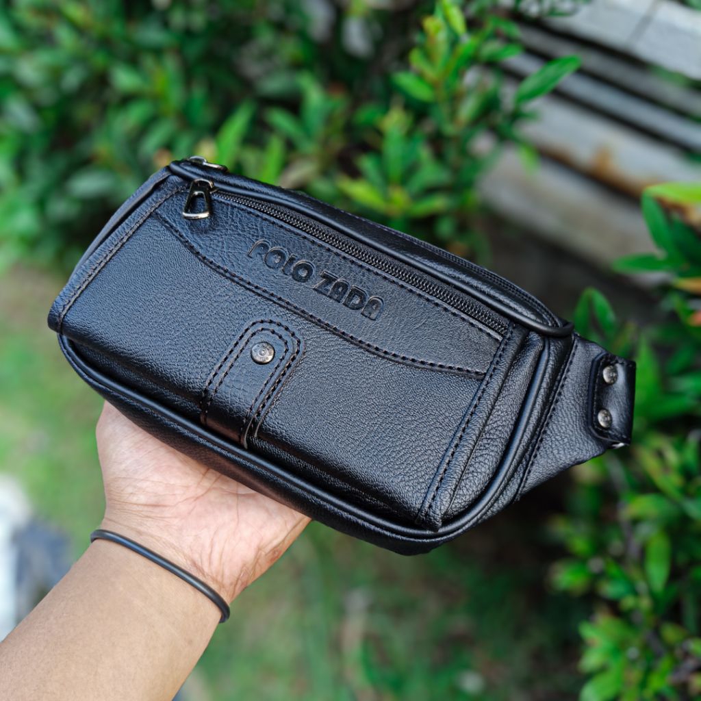 POLOZADA | Tas Selempang Pria Kulit Sintetis Premium | Waist Bag Pria Original Merk Polozada