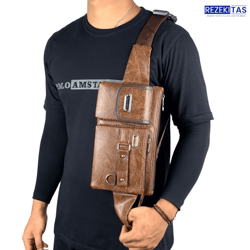 Waist Bag Tas Pinggang Kulit PU Leather Polo Amstar Tas Selempang Terbaru Waterproof