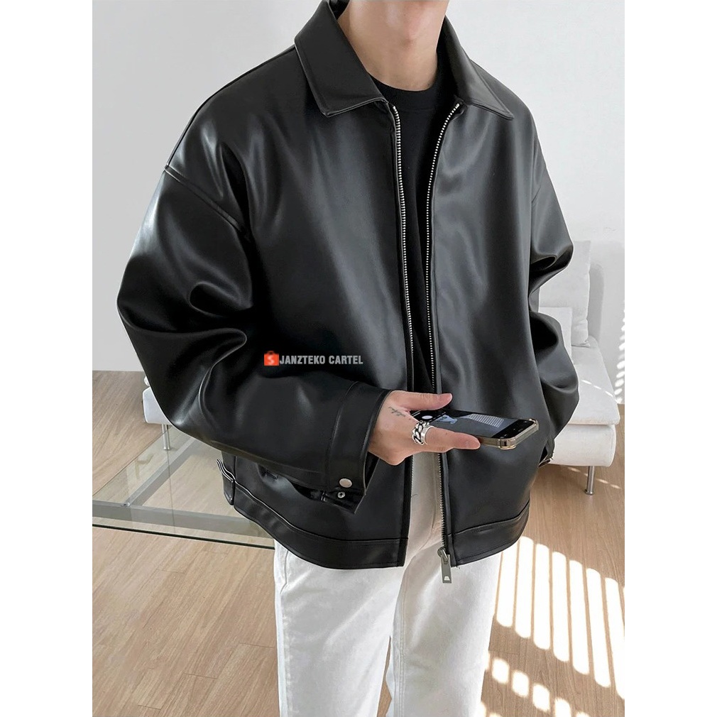 JNK x JORDI - Jaket Pria Classic Style Bahan Semi Kulit Sintetis Viena Oversize PU Leather Jackets Outfit Fashion Casual