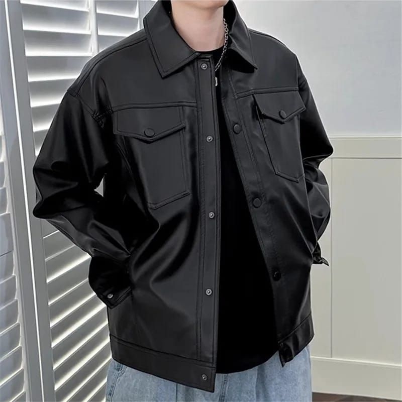 Jacket Kulit pria wanita mantel kerah lipat jaket kulit keren casual clasic style