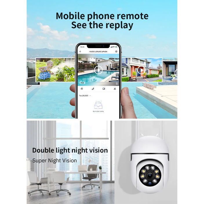 Kamera CCTV 2Antena PTZ Bohlam Mini Nirkabel Wifi Cerdas 1080p Full HD V380Pro SanDisk Kontrolponsel
