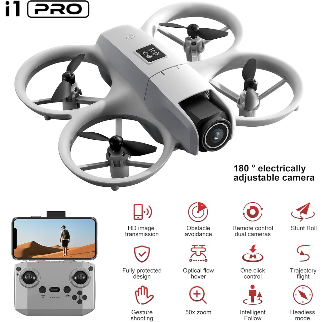 Drone dengan Kamera HD untuk Dewasa, 360° Rolling Intelligent Obstacle Avoidance One-Key Takeoff/Landing, Mode Headless 1 Baterai Remote Control Drone Pesawat Mini Portabel Hadiah untuk Pemula Remaja