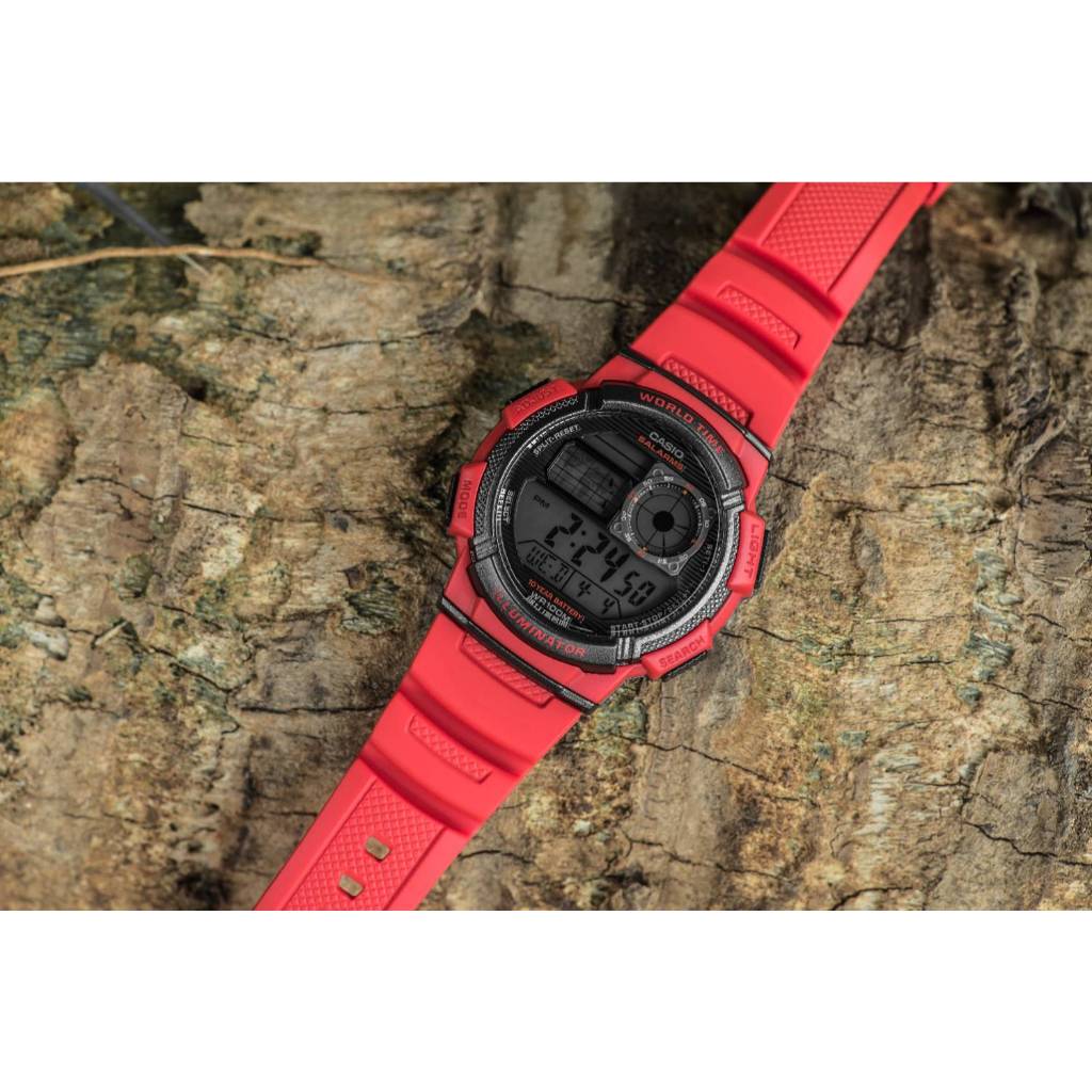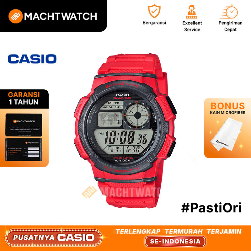 Jam Tangan Pria Digital Casio Standard AE-1000W-4AVDF AE1000 AE-1000W Dial Red Resin Band