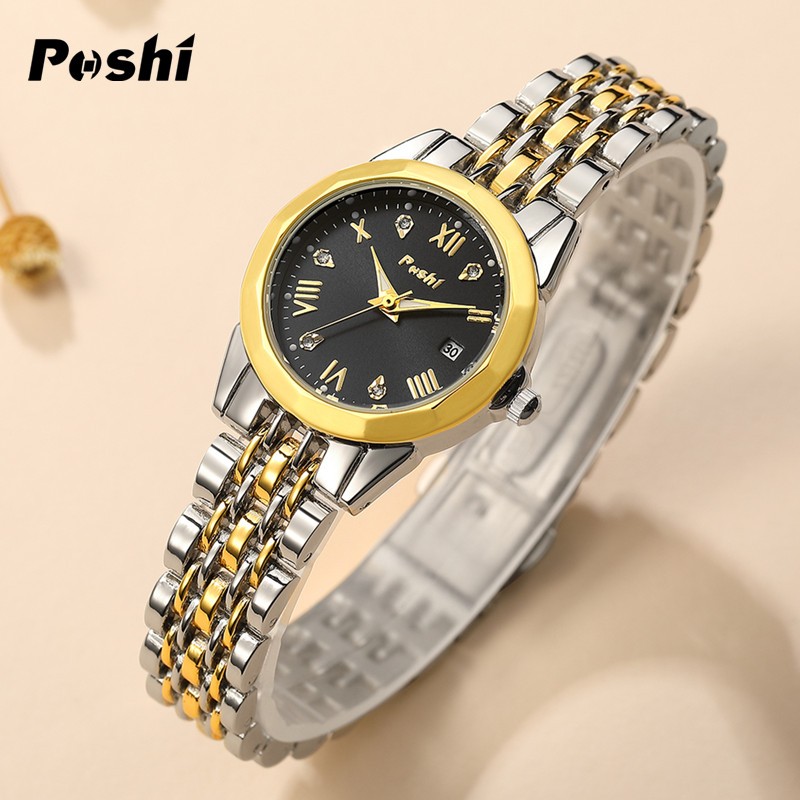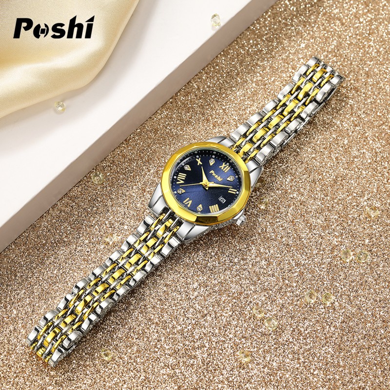 Jam Tangan Wanita Poshi Tahan Air dengan Tali Stainless Steel dan Dial Biru Elegan