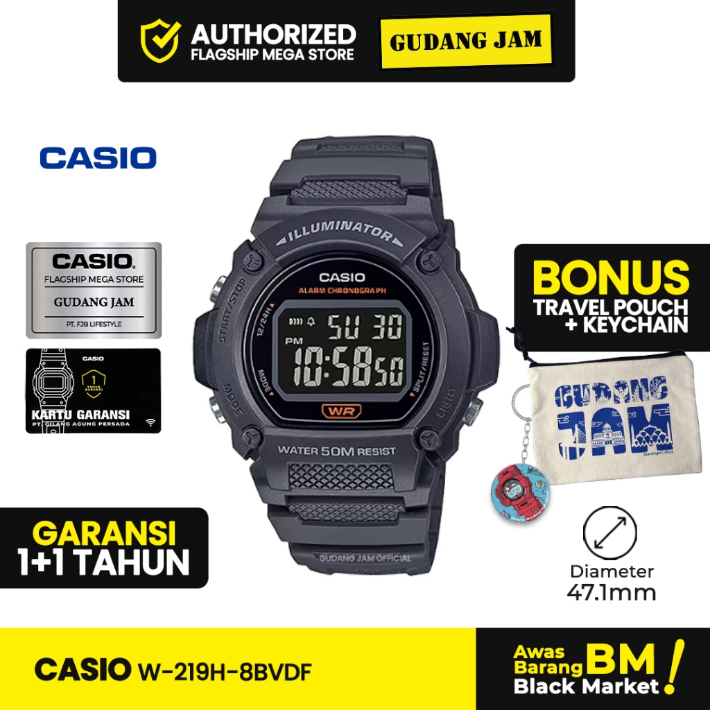 Jam Tangan Cowok Casio Original W-219H-8BVDF Digital Resin Band