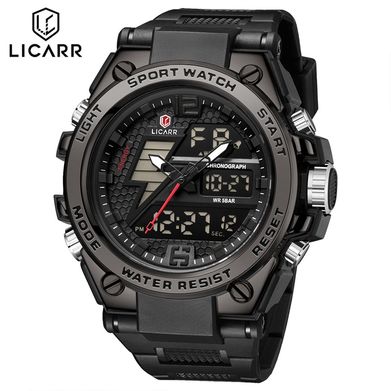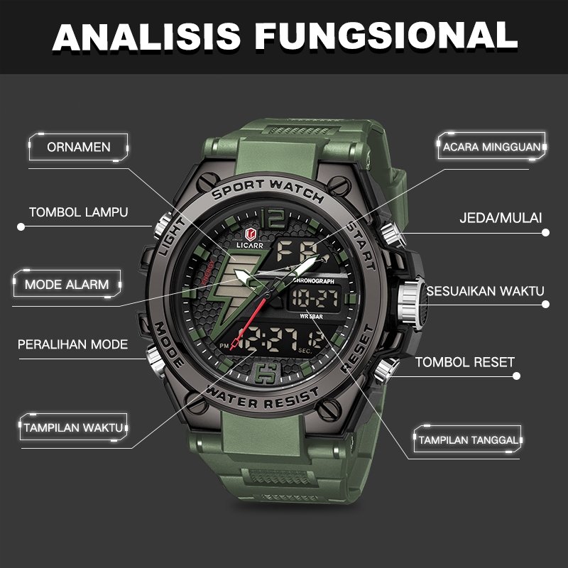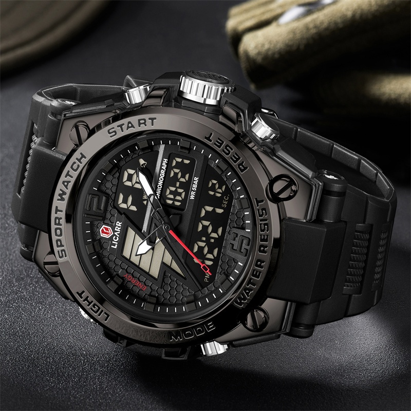LICARR Jam Tangan Pria Merek Olahraga Analog Digital Fashion Kuarsa Anti Air Santai Jam Tangan Original Stopwatch 9513