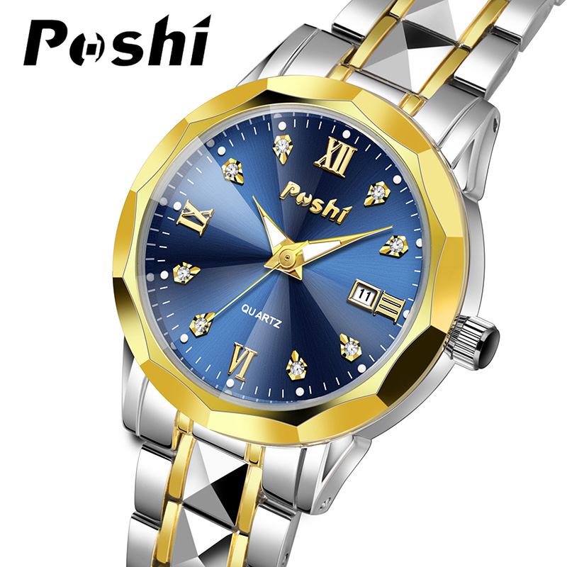 Jam Tangan Wanita Modis Alloy Ringan Tahan Air dengan Kalender Gaya Fashion, - POSHI Watches PS992