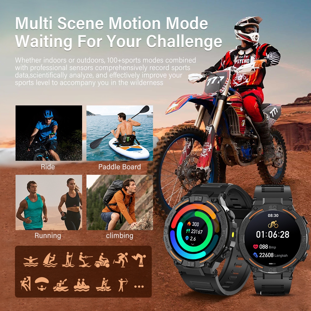 RAYVASI HW50 SmartWatch Pria LED Flashlight Jam Running Pria Bluetooth Call 100+ Sport Mode Heart Rate Jam Pintar