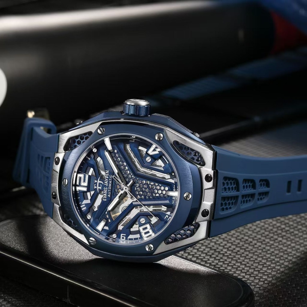 Jam tangan Evans Jayden Jam Tangan Pria 9621 Rubber Automatic Movement Silicon Kaca Sapphire Chronograph Water Resistant 5ATM
