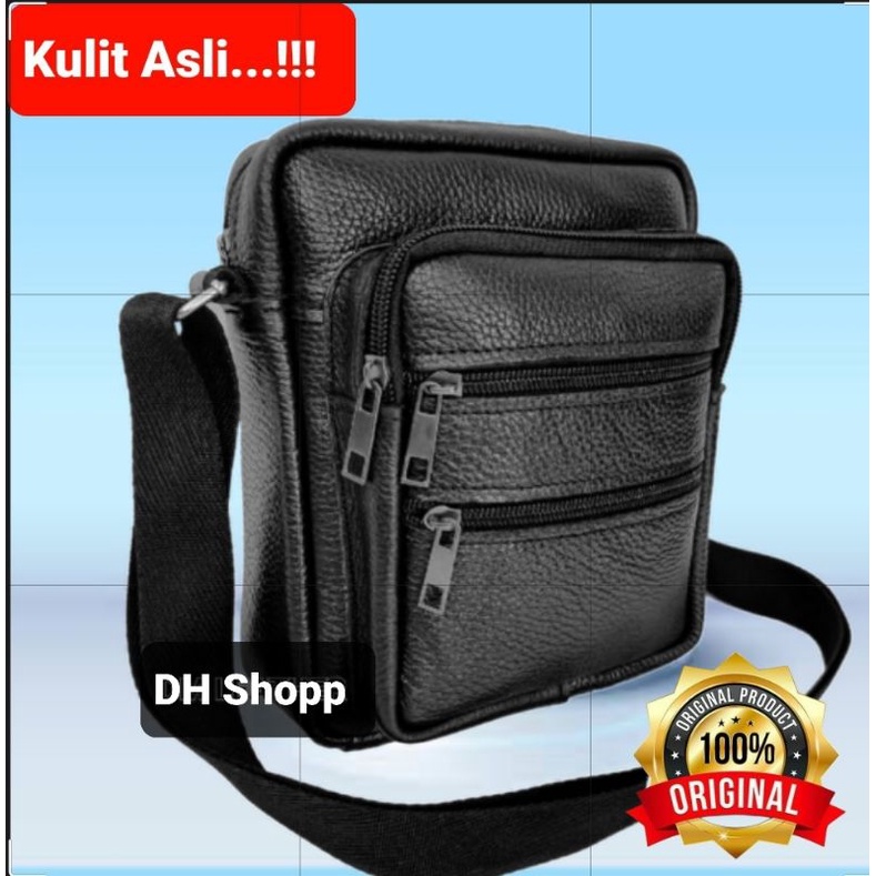 Tas Selempang Pria Kulit Sapi Asli model banyak saku