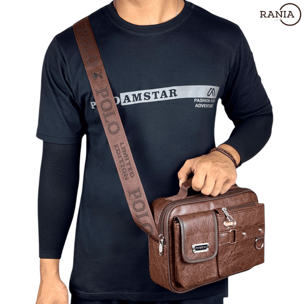Tas Selempang Kulit Original Polo Amstar Bahan Kulit PU Leather Waterproof Tas Pria Tas Selempang